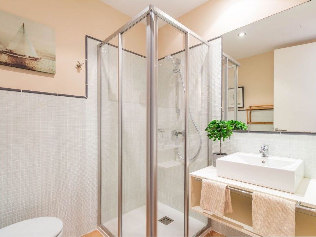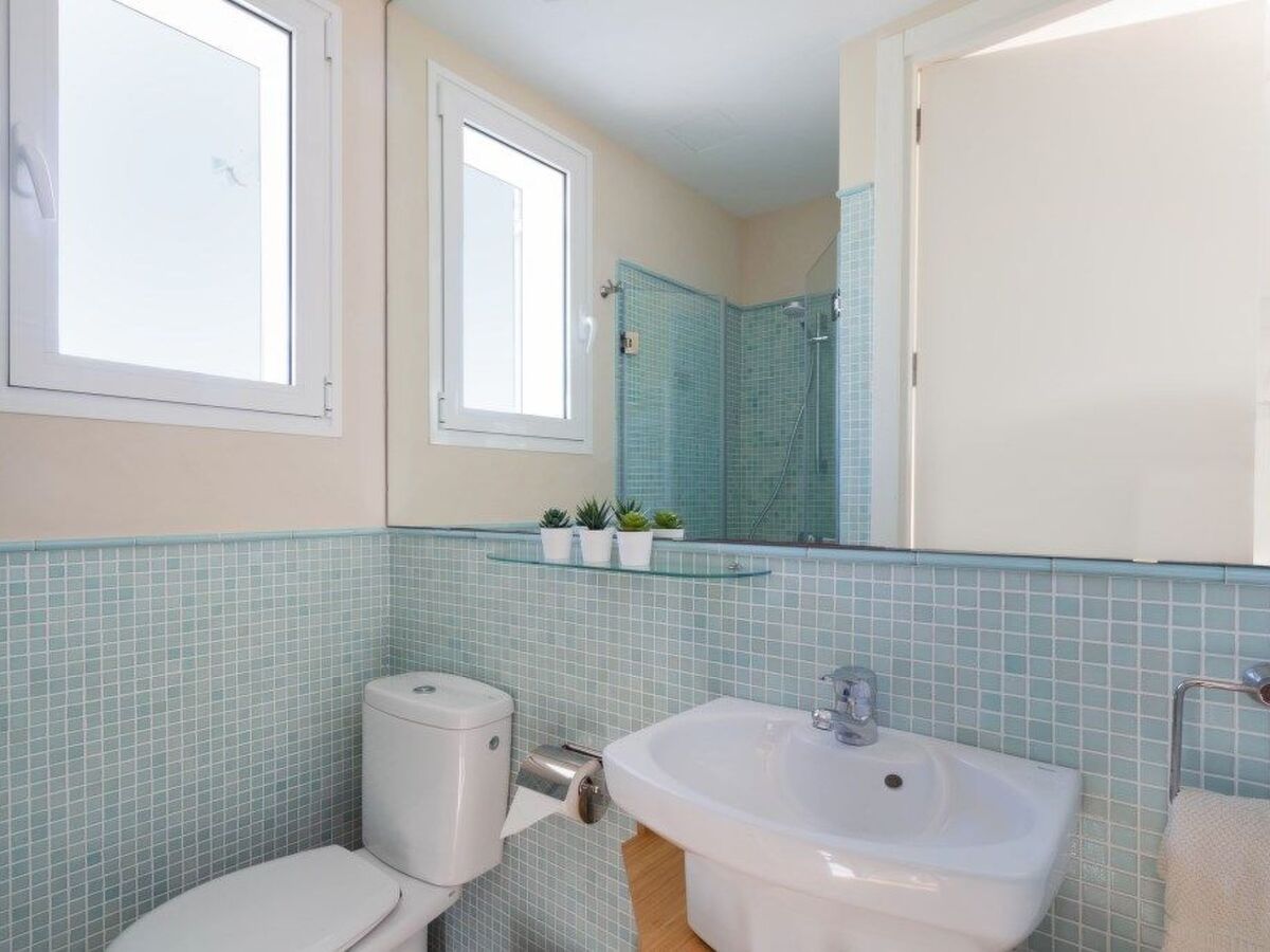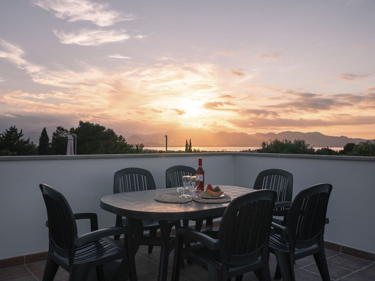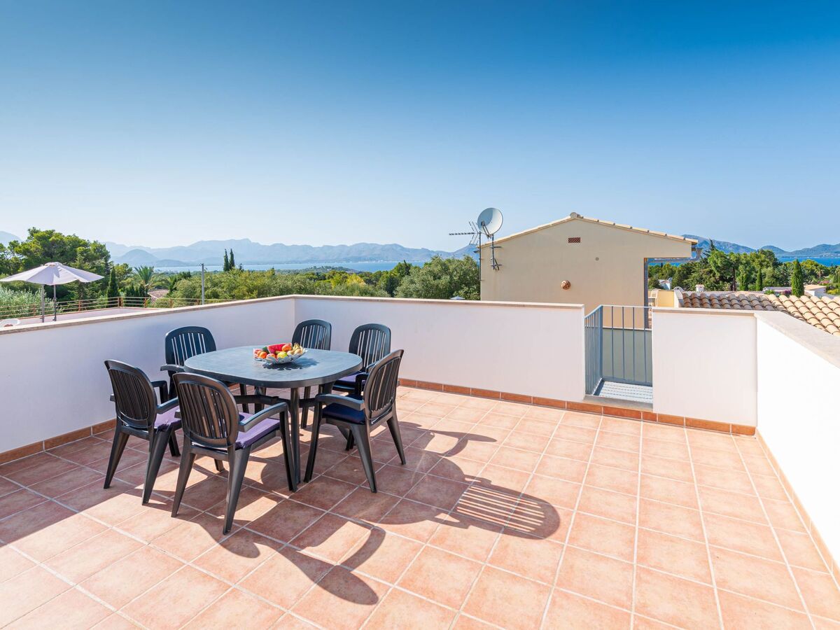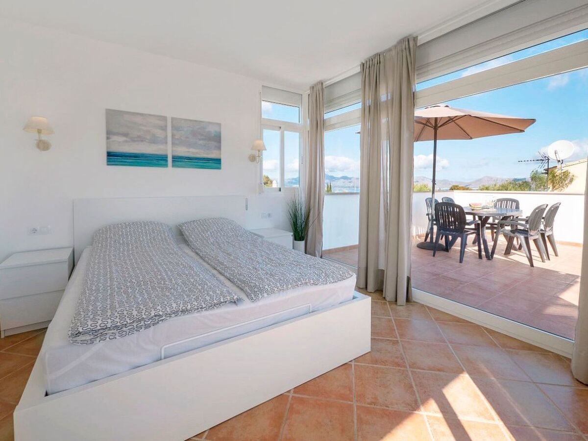 On the first floor there is a further bedroom (bed: 180 x 200 cm) with bathroom and a large terrace with views over the bay of Pollensa.