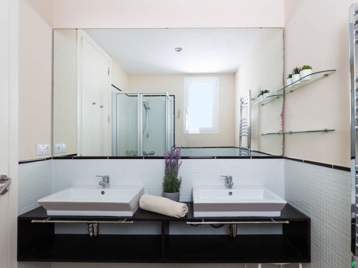 The first bedroom has two single beds measuring 90 x 200 cm, the second has a double bed measuring 200 x 200 cm.