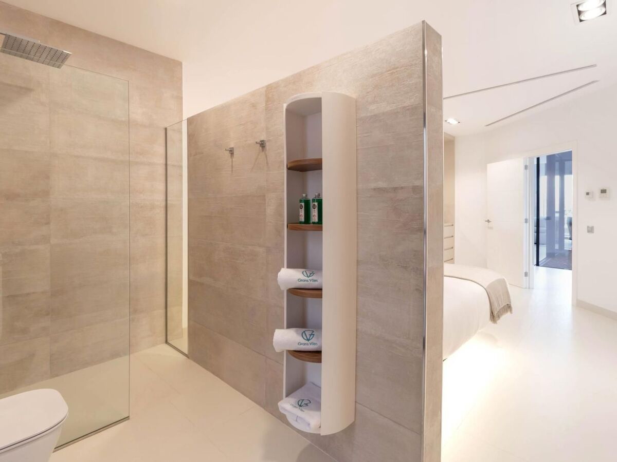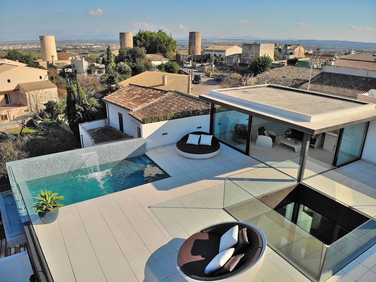 The swimming pool is located on the rooftop, in order to maximize the great potential of the views, thus obtaining a panoramic view of practically the entire Sierra de Tramuntana mountain range and even the sea of the Bay of Alcudia.