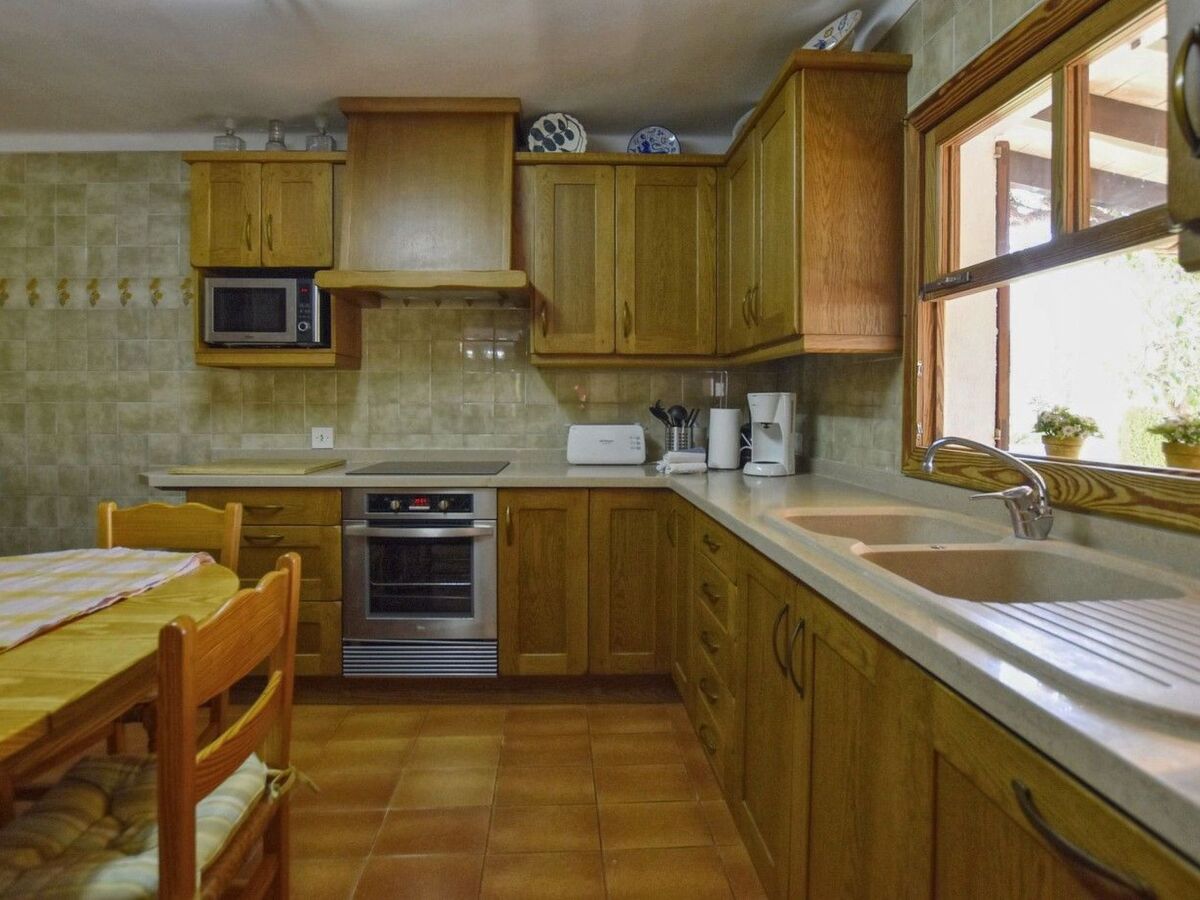 The kitchen is fully equipped with electrical appliances such as ceramic hob, coffee maker and kettle.
