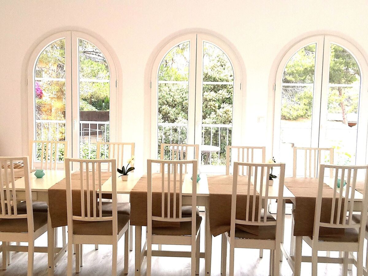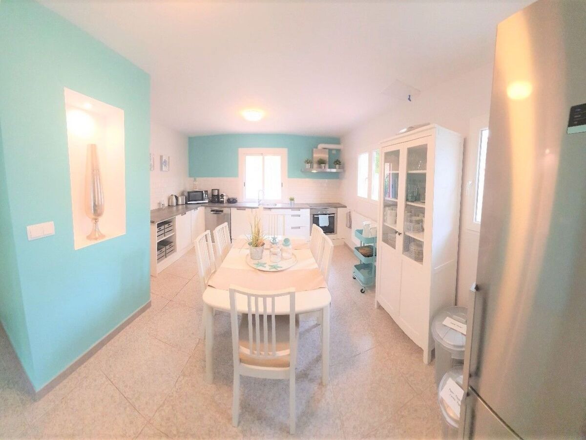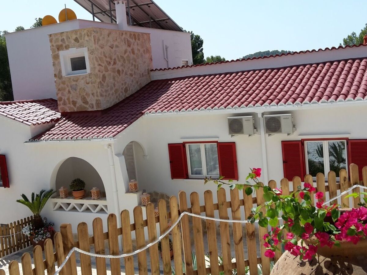The holiday villa close to the beach with high ceilings and stucco has 4 fully equipped flats, which are connected by a common staircase.