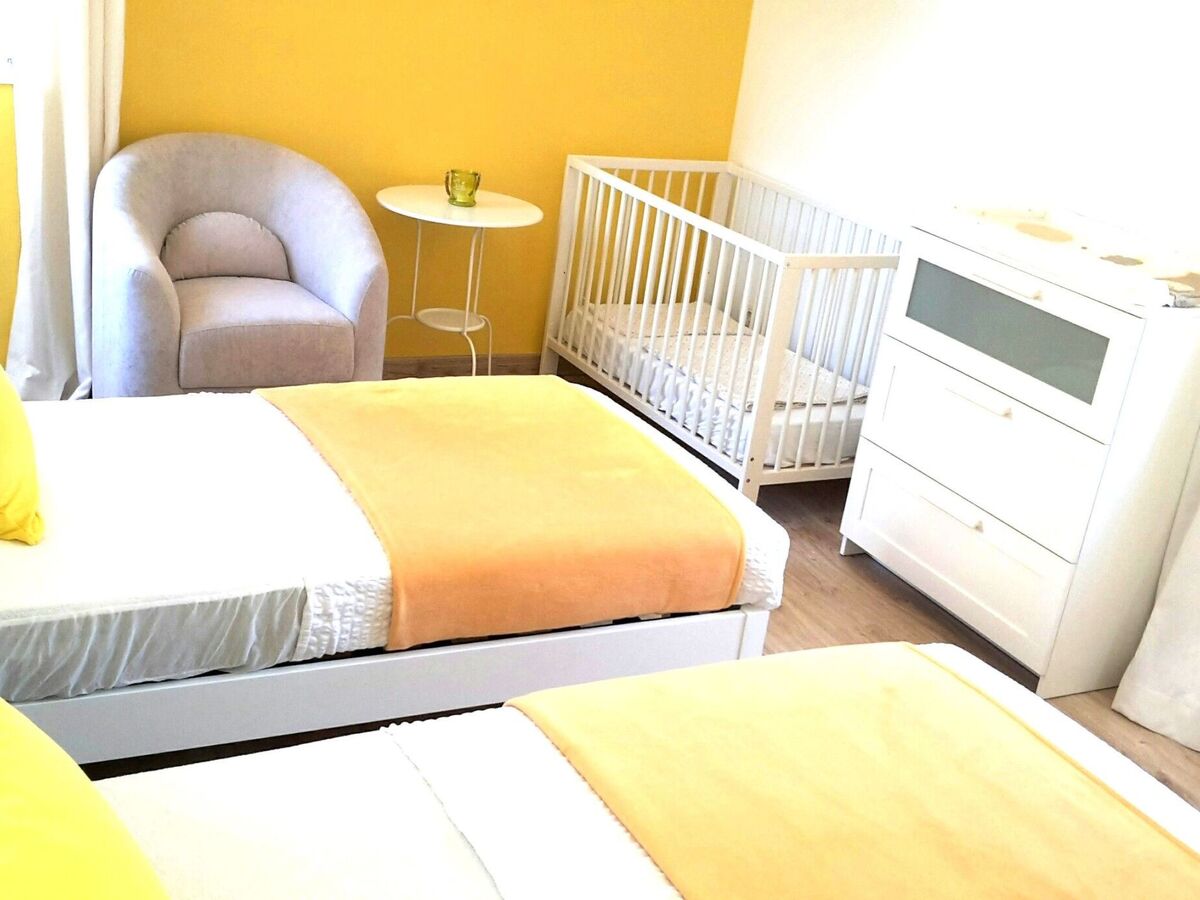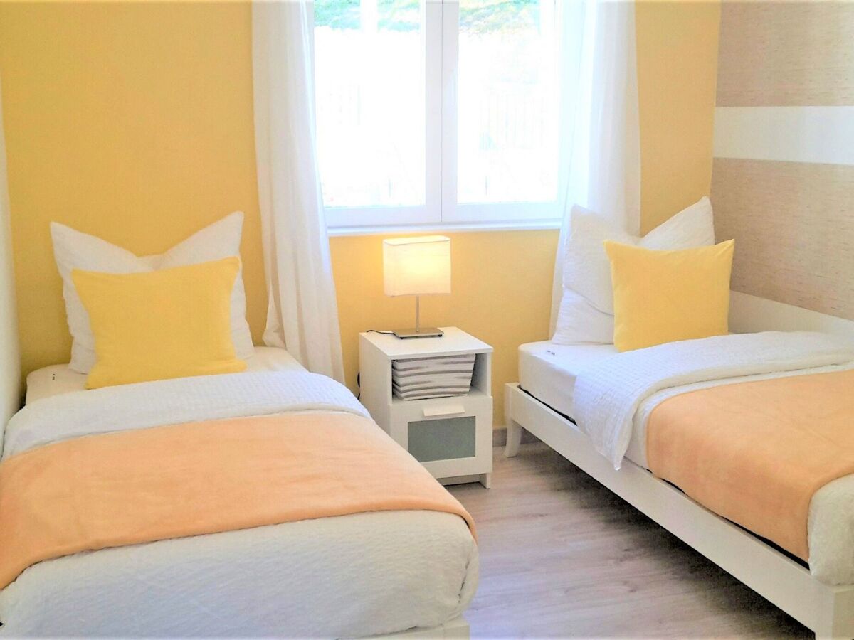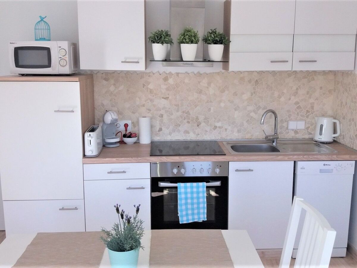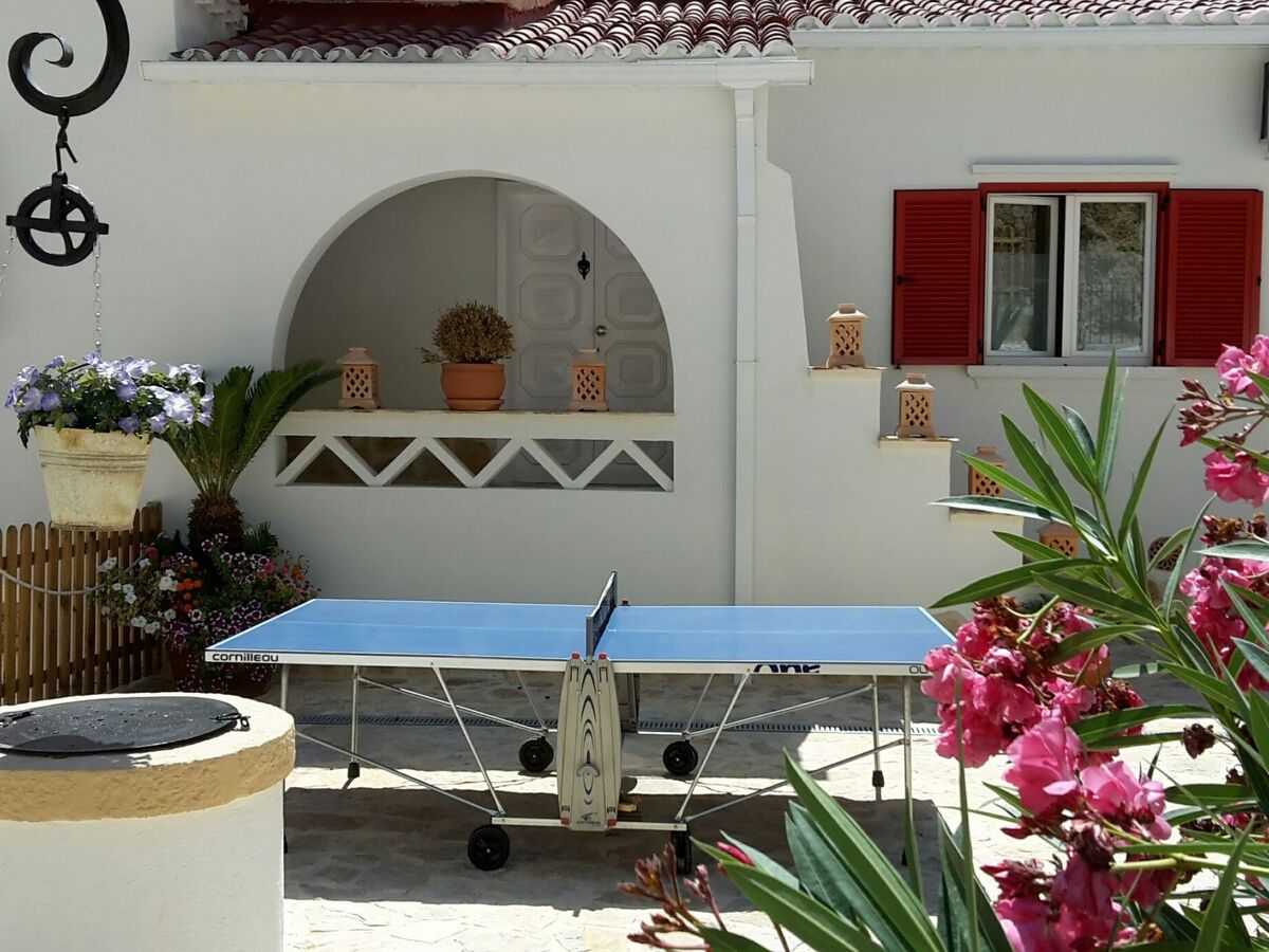 The holiday villa close to the beach with high ceilings and stucco has 4 fully equipped flats, which are connected by a common staircase.