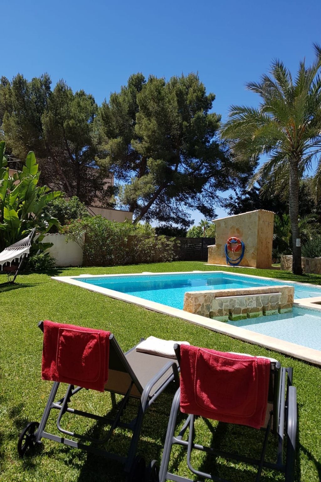 This renovated holiday villa is located in the popular seaside resort of Paguera, in the south-west of the island of Mallorca, just a 3-minute walk from the fine, gently sloping sandy beach.