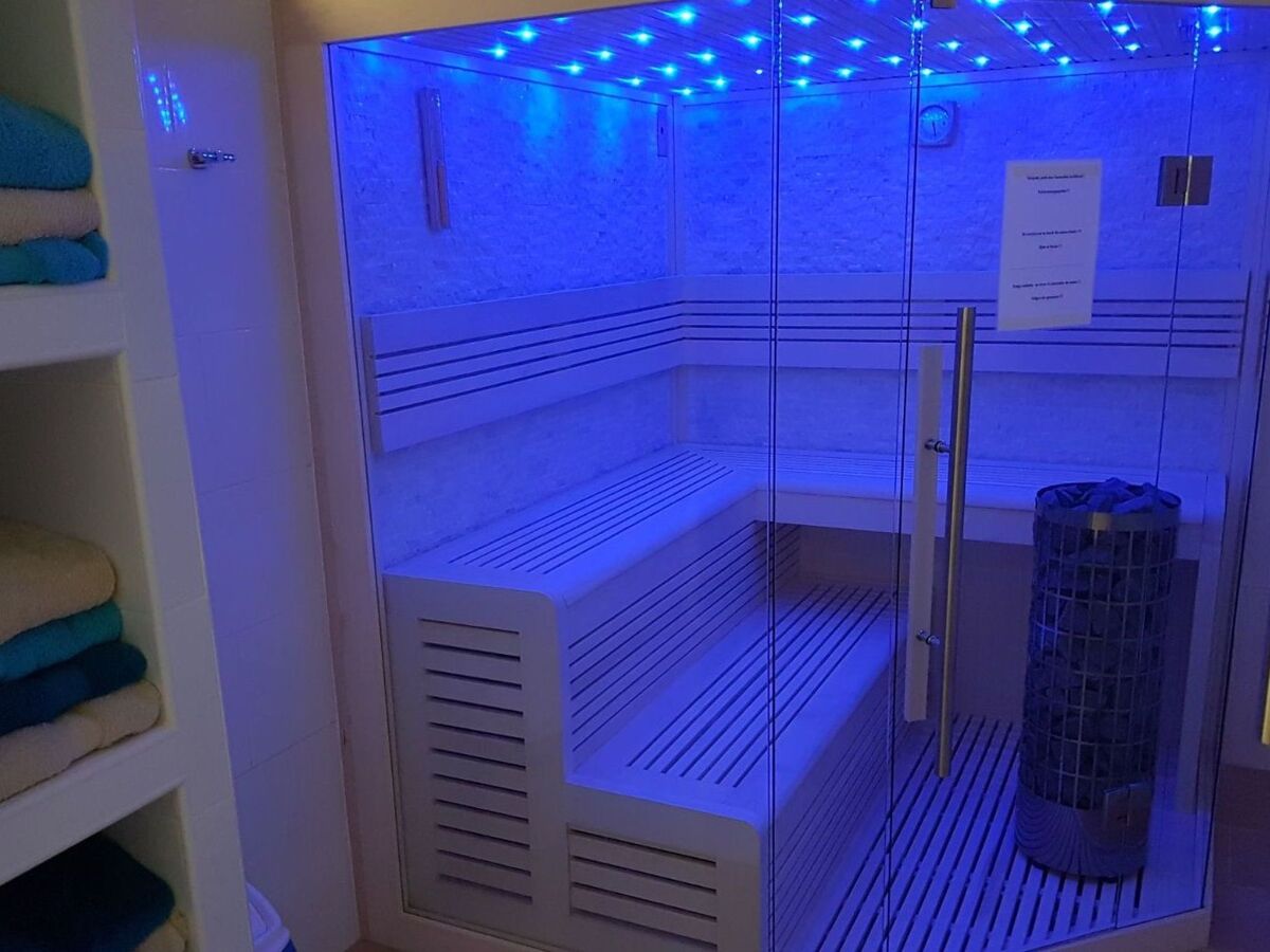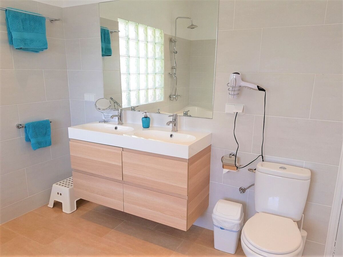 Inside the villa there are 6 double bedrooms with safe, 4 living rooms with large sofa beds and 4 TVs, 4 fully equipped kitchens, 1 large dining room, 6 bathrooms, 1 large sauna with extra 4 showers and changing room with WC and 1 storage room for bicycles.