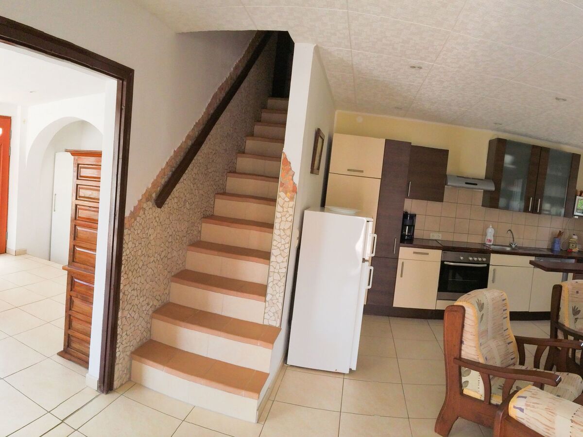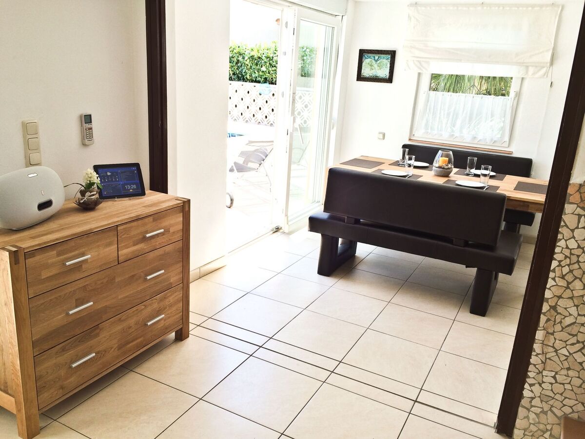 It has 3 bedrooms, a large open kitchen, living room, dining room, 2 bathrooms with shower and toilet, a large pool (8×4m 110-170cm deep), several large terraces, WLAN, LED smart TV, music system with Bluetooth and a Samsung tablet and is located in a quiet, central location, only a few minutes walk from the beach or boulevard.