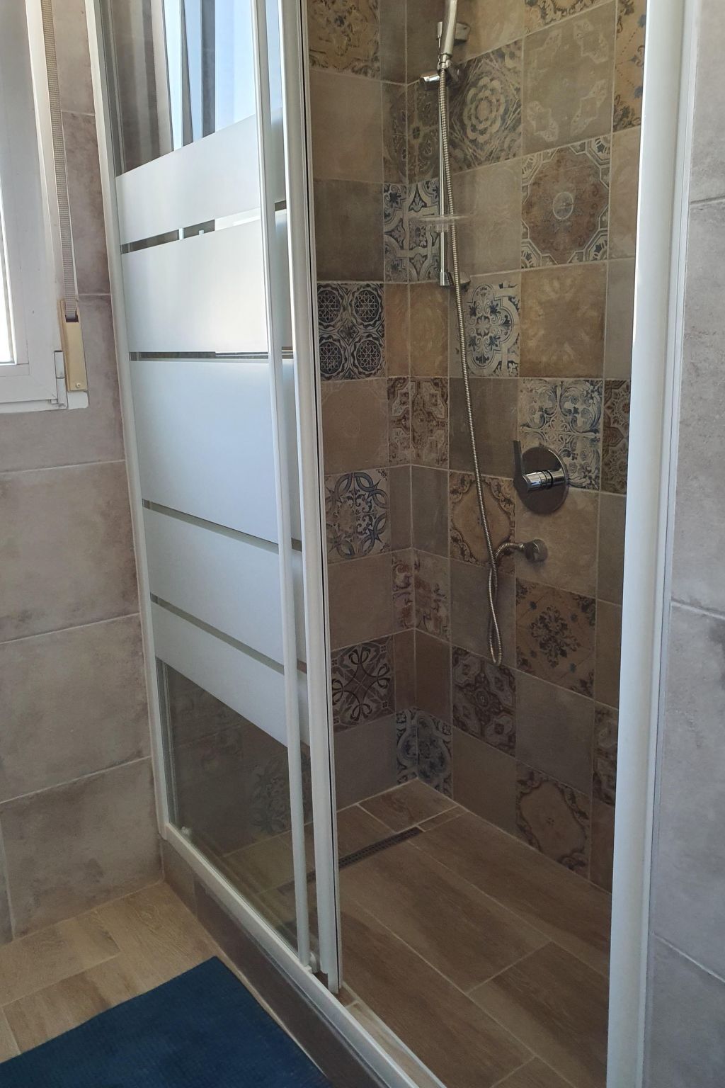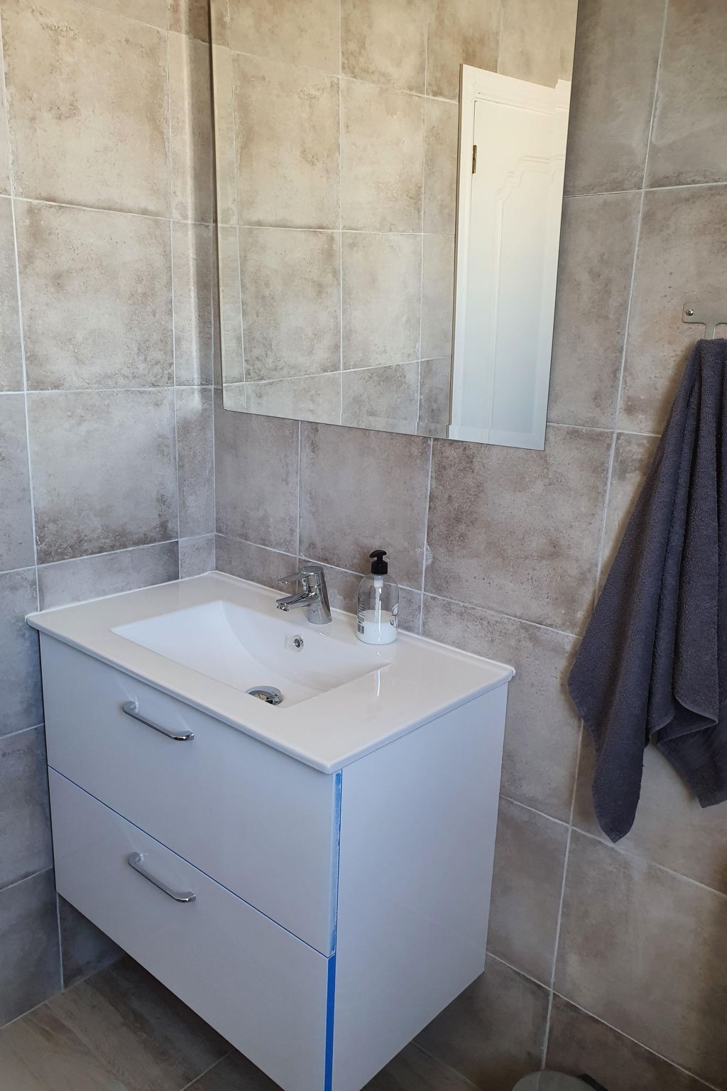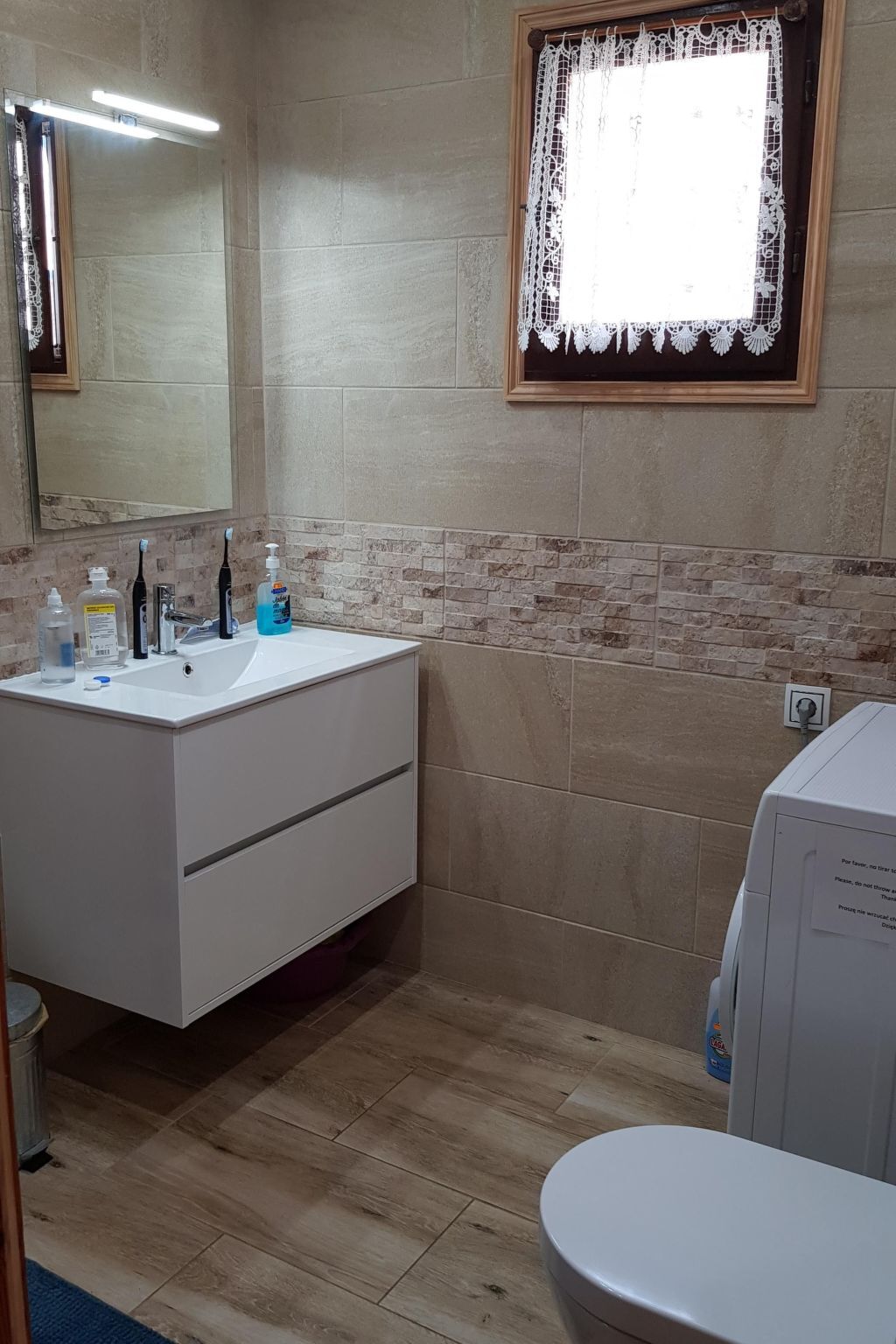 Au premier étage, il y a également une salle de bain avec douche et une très grande terrasse avec un coin salon.