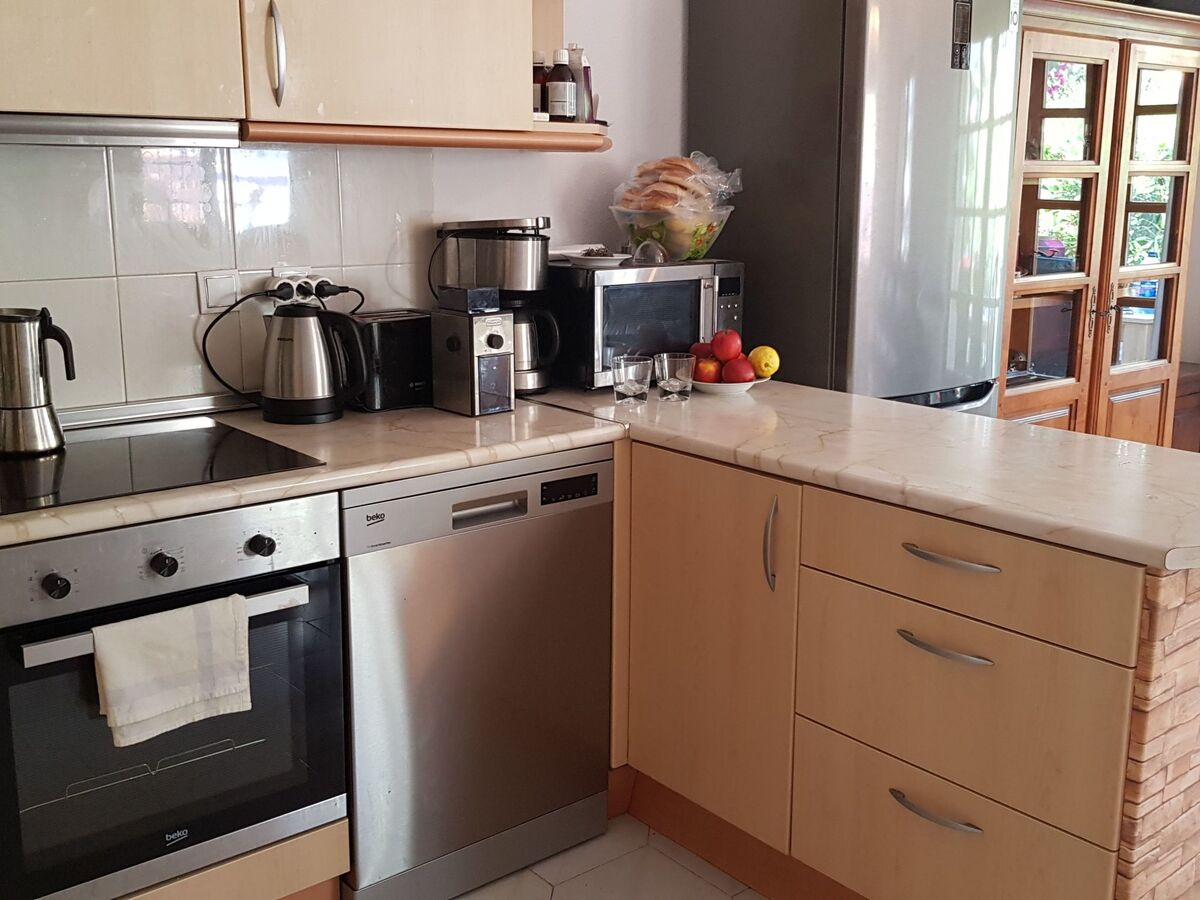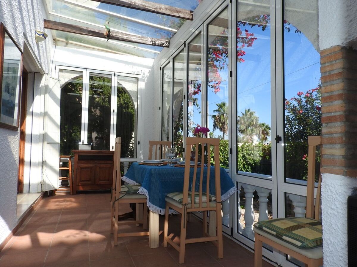 Au rez-de-chaussée de la villa, il y a un jardin d'hiver à travers lequel une porte mène à la salle de séjour reliée à la cuisine.