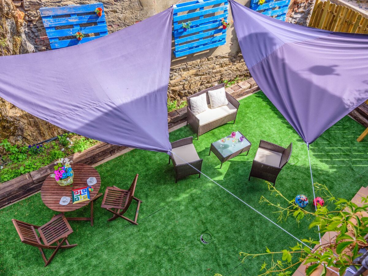 The terrace - viewpoint, giving access to housing allows us to enjoy a pleasant view over the roofs of the village, the river and the lush forest of beech and oak trees across the valley.