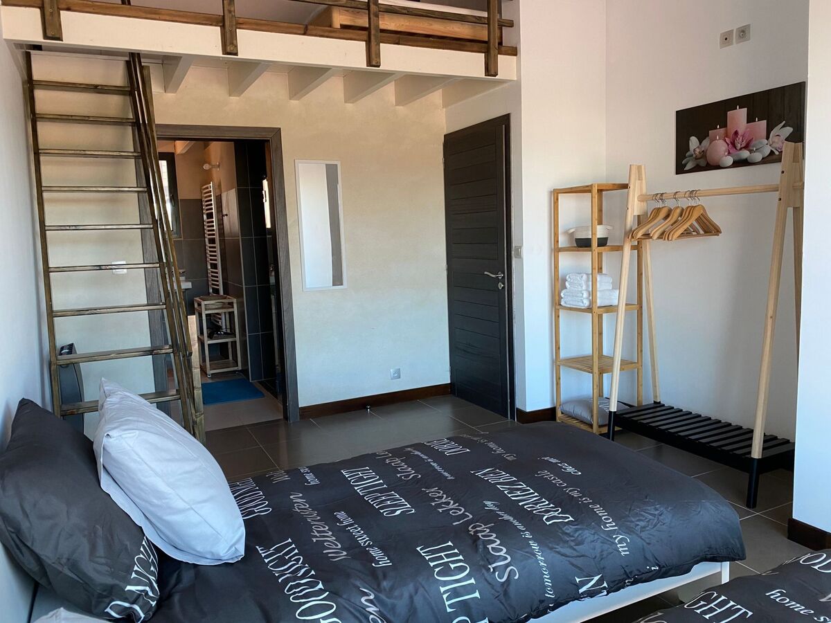 A double bedroom with double bed and modern bathroom, a family room (with private bathroom) for 2 adults with mezzanine for 2 children, a large mezzanine with sea view where 2 more people can sleep if necessary.