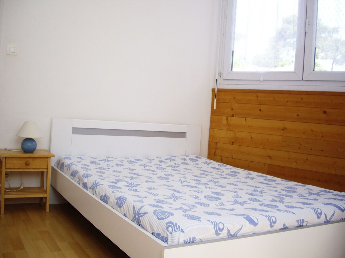 - une 1ère chambre à coucher avec un lit double pour 2 personnes (140x190) et 2 lits simples superposés 90x190 (2 x 1 personne) en pin blanc,