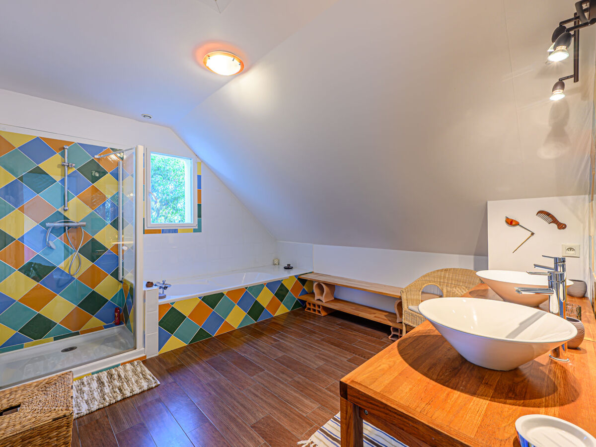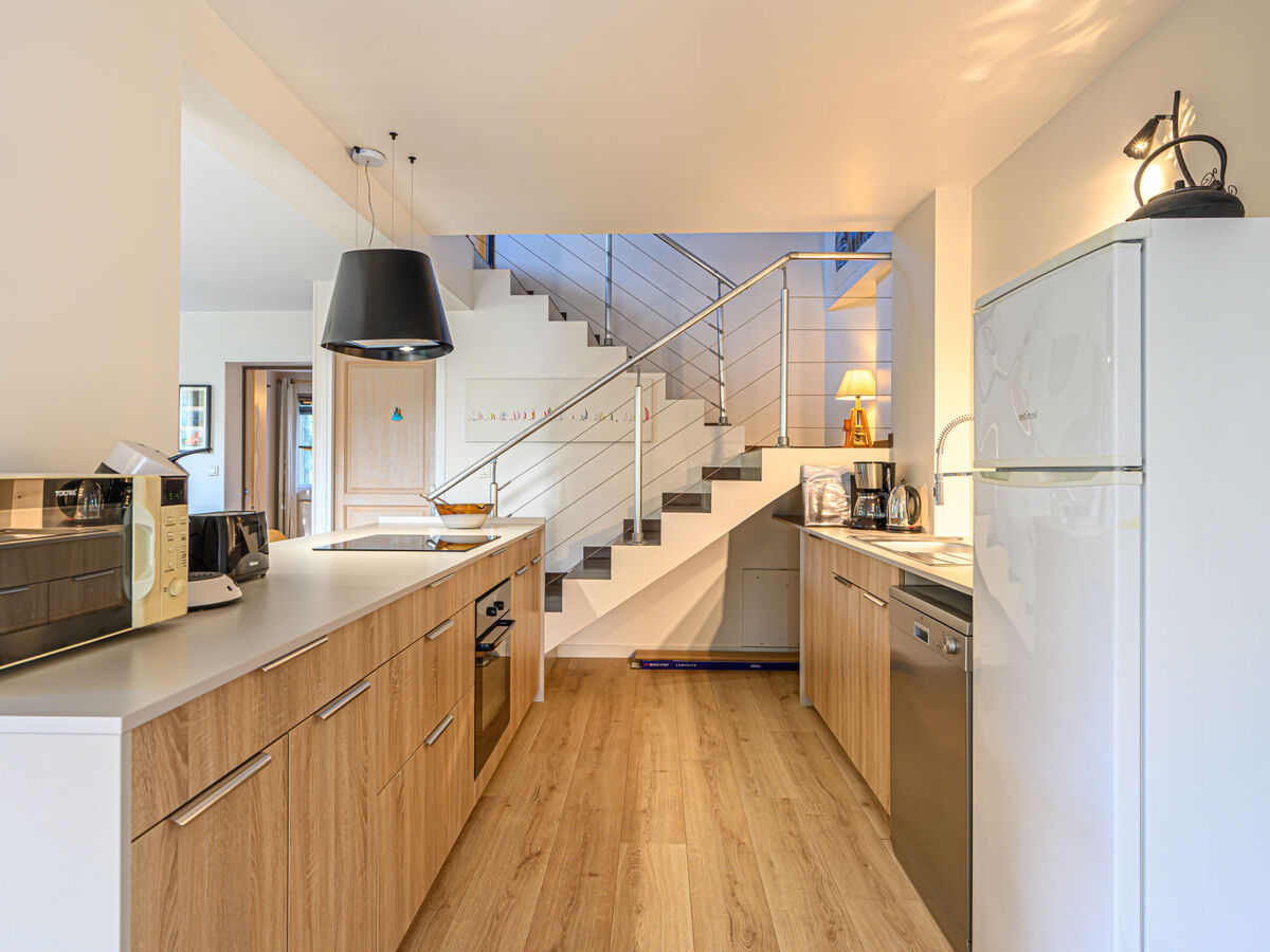 Cuisine (four, lave-vaisselle, 3 plaques à induction, grille-pain, bouilloire électrique, micro-ondes, cafetière électrique).