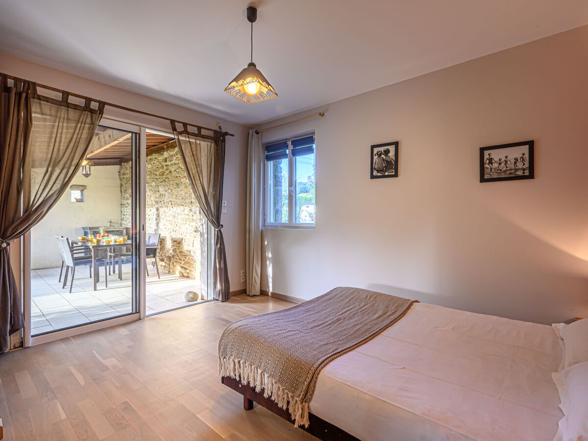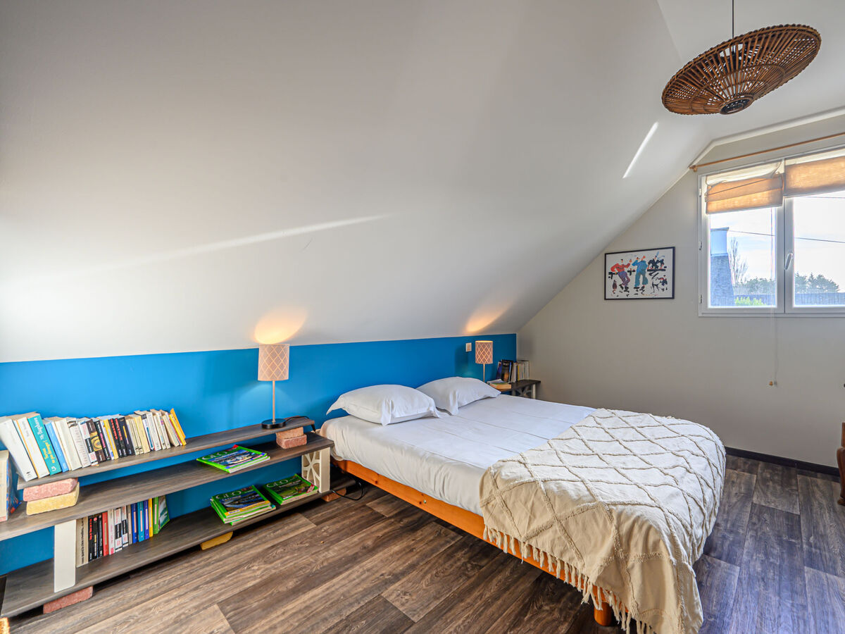 À l'étage supérieur: 1 chambre avec 1 grand-lit (1 x 140 cm, longueur 190 cm).