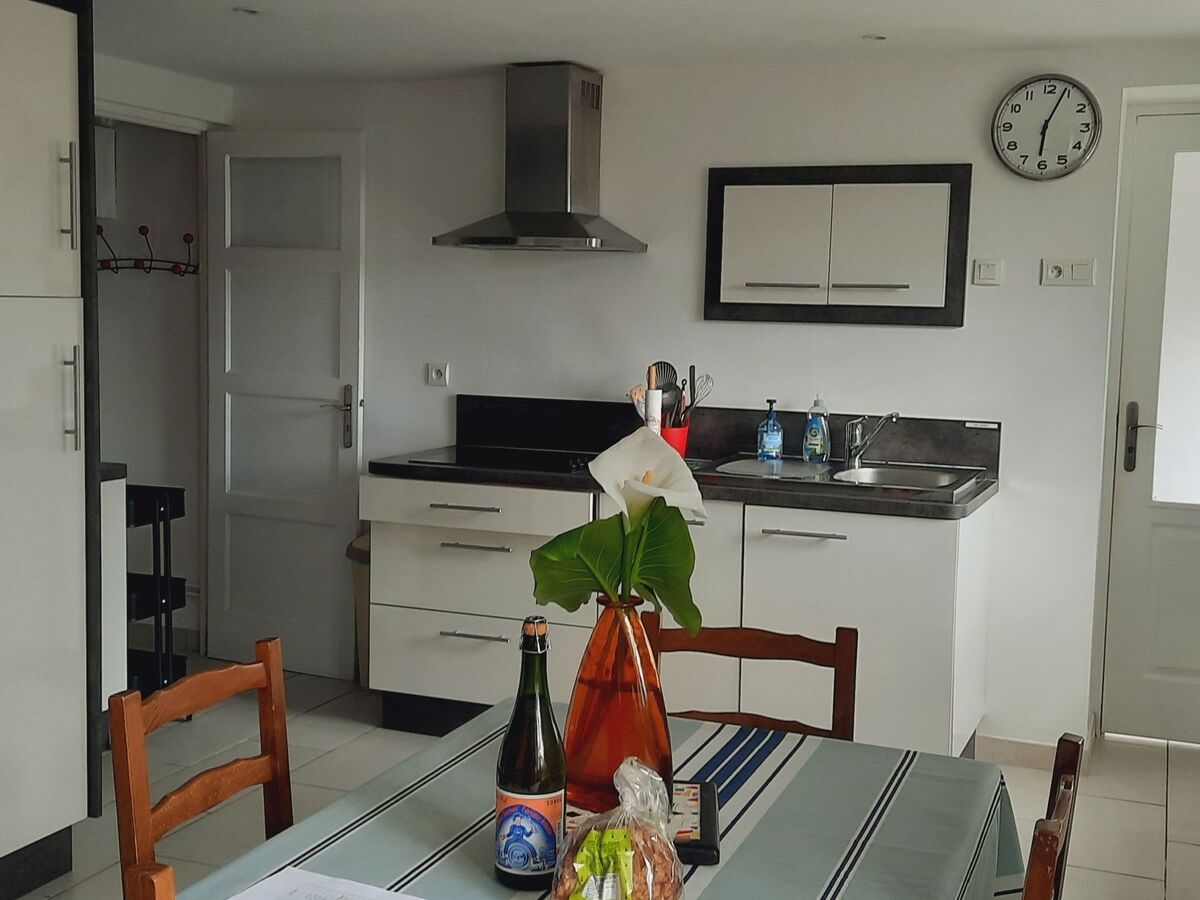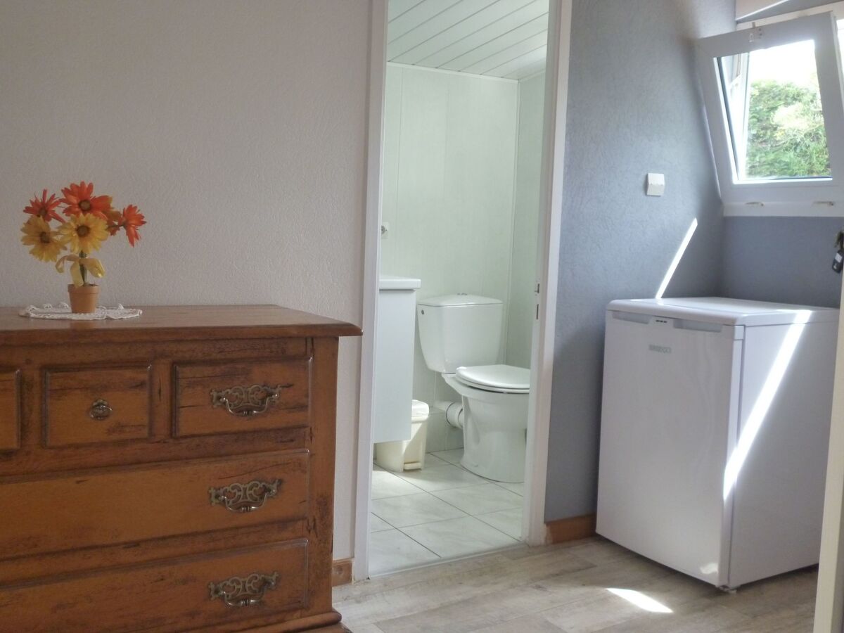À côté de la cuisine se trouve une salle de bains avec douche et une deuxième salle d'eau avec WC à l'arriere du gite .