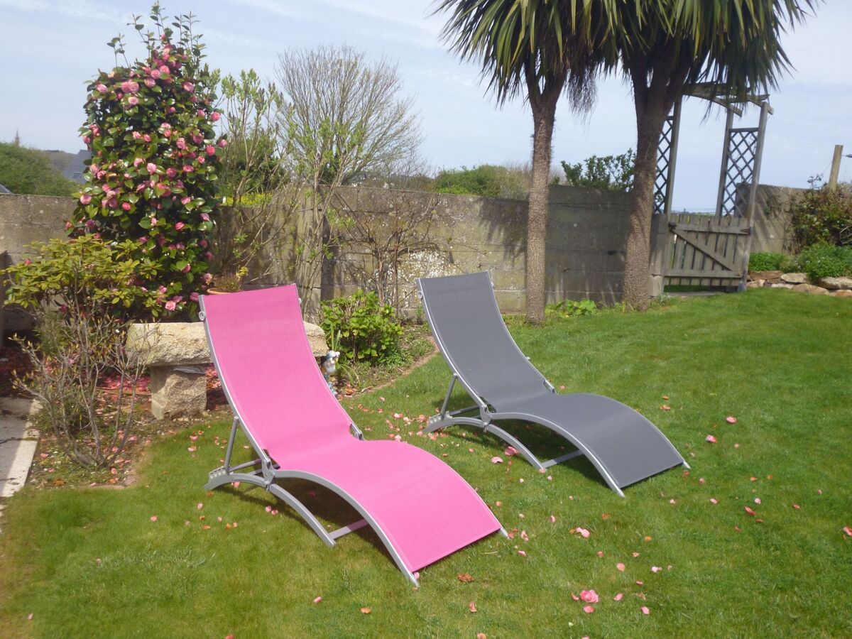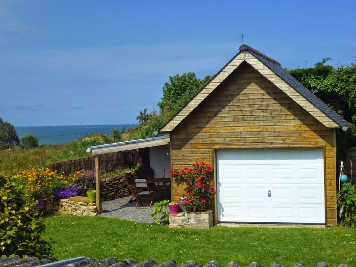 Le jardin de 1000 m2 où le stationnement sur l'herbe est gratuit offre un espace de jeu privé pour la pétanque ou les palets, un terrain individuel entièrement clos et sécurisé par un portail, ainsi qu'un abri pergola face à la mer, idéal pour les moments de détente.