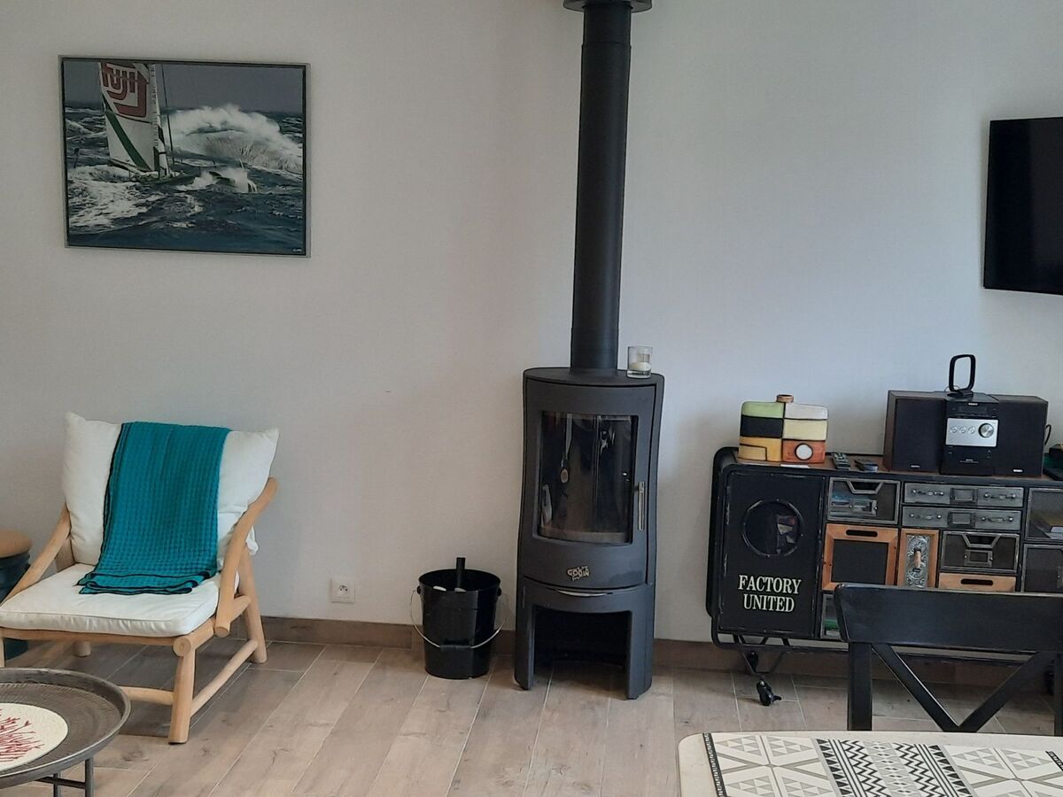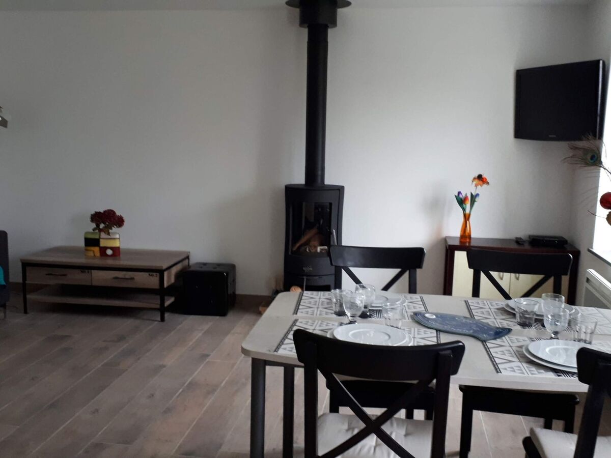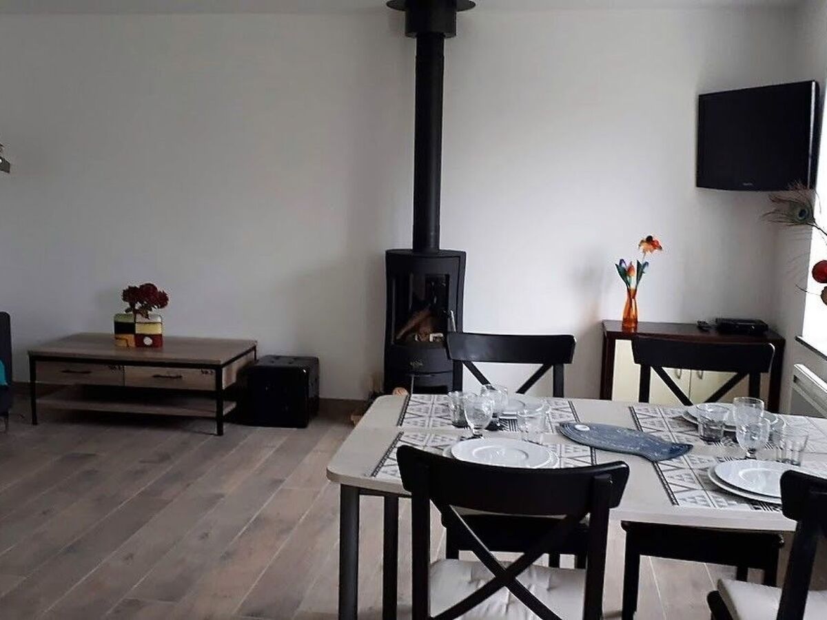 -le coin repas -Le coin salon avec téléviseur écran plat ,lecteur de CD ,wifi ,hi fi , son poêle à bois 1 canapé 3 places .