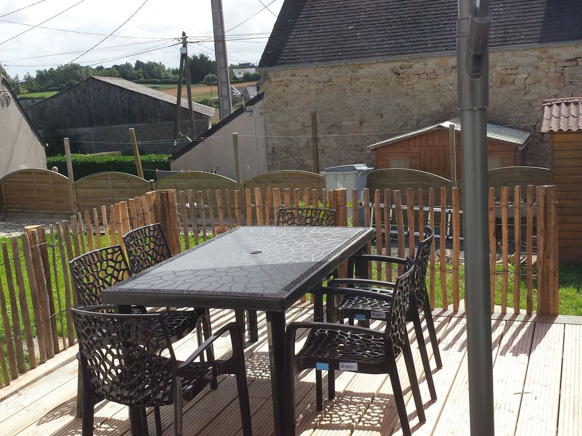 1 Terrasse avec meubles de jardin et parasol / balcon privatif, barbecue charbon gratuit possible dans la jardin .Terrain individuel/ clôturé cabanon de jardin Océan à marée basse pêche à pieds possible