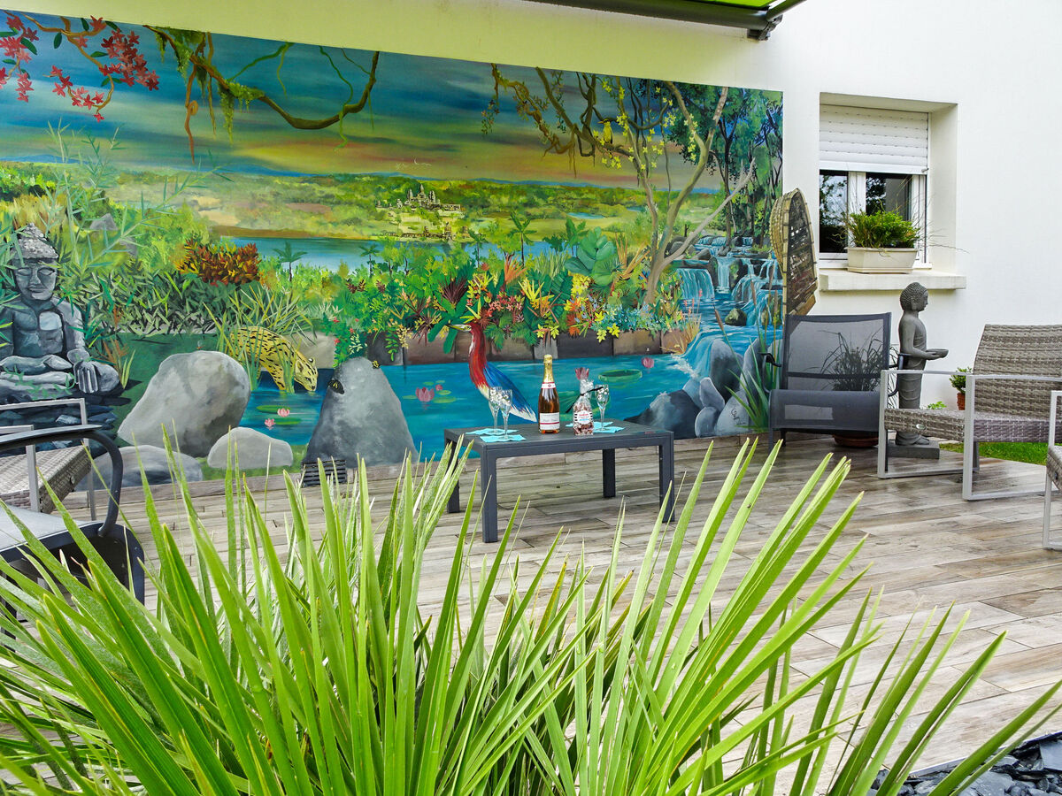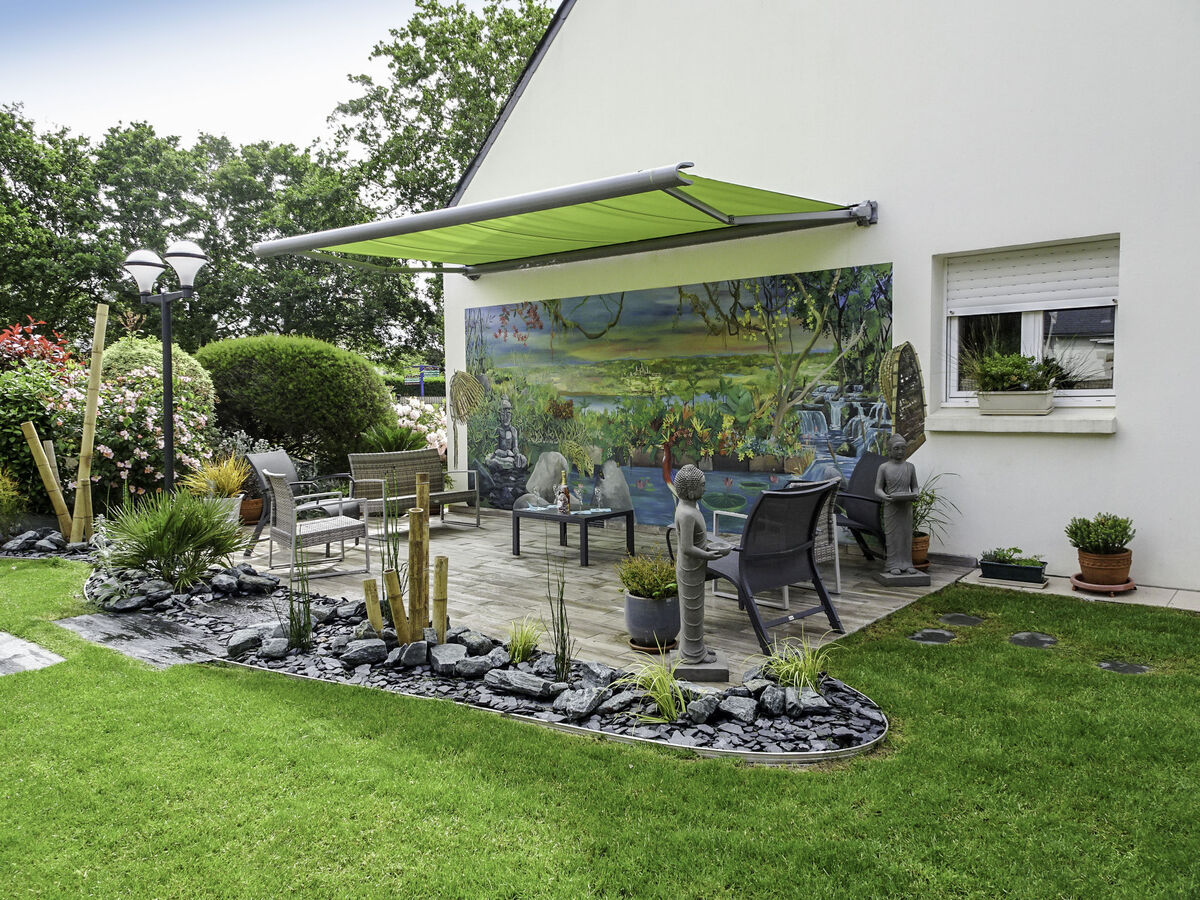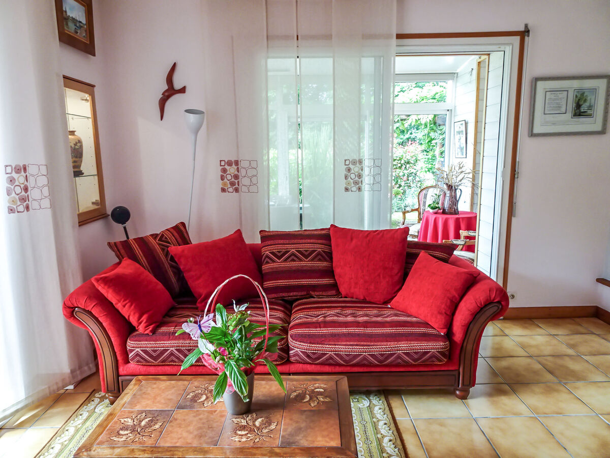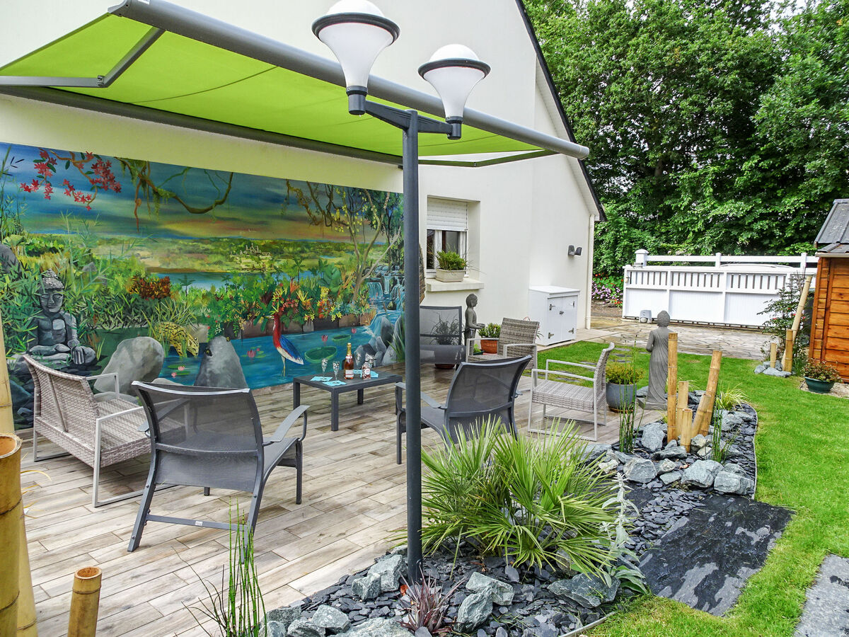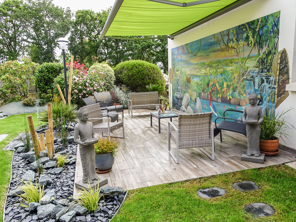 La villa est entourée d'un beau jardin entretenu avec pelouse et arbres. Quant à la terrasse, elle comporte des meubles de jardin et un barbecue.