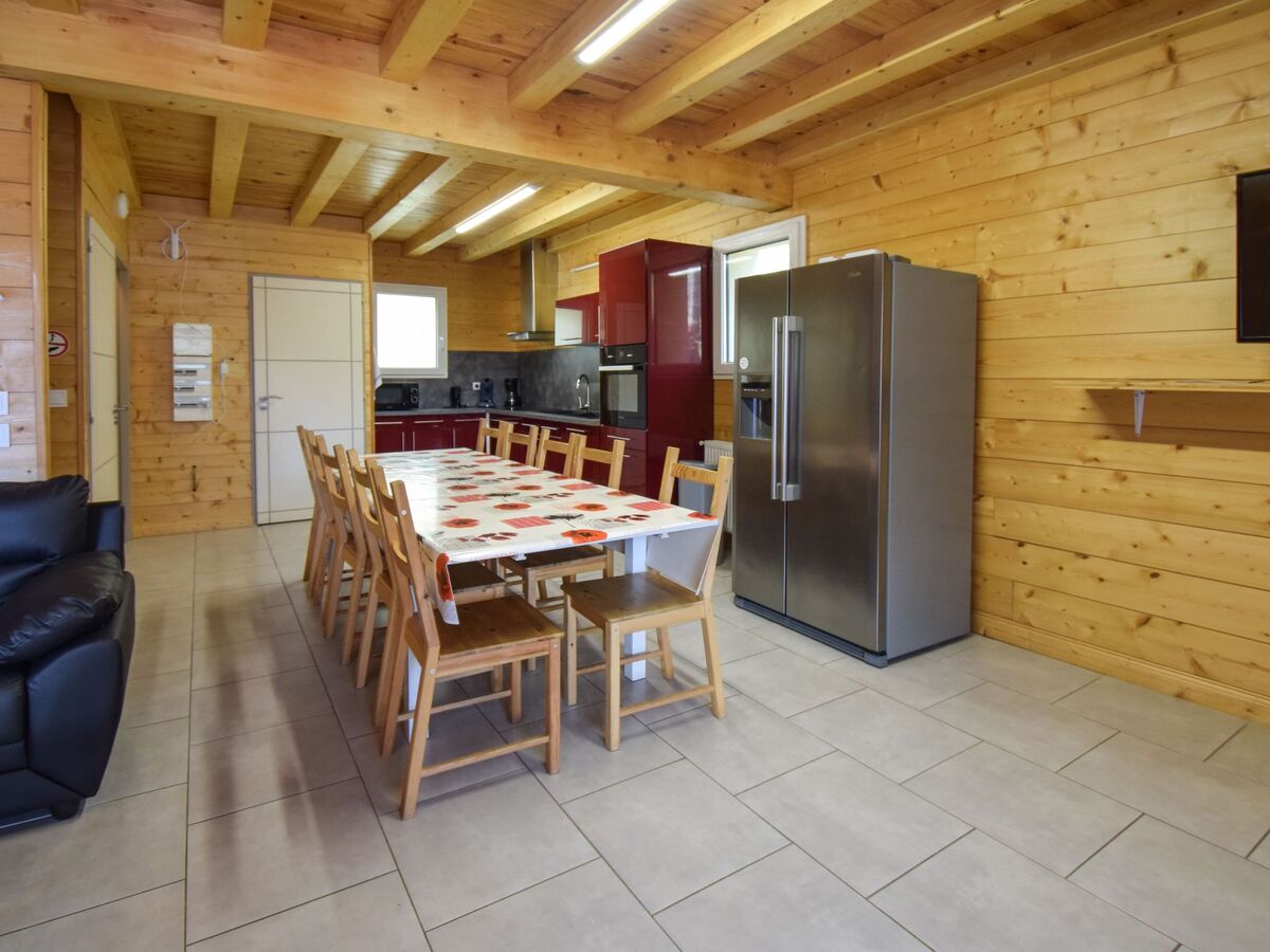 Chalet de très grand confort de 100m² pouvant accueillir 10 personnes chacun: cuisine équipée (frigo americain, four , micro-ondes, plaques vitrocéramique, lave vaisselle, lave linge...)salon (2 canapés) une piece de vie avec TV led 120 cm , 4 chambres , 2 salles d'eau, 2 wc .