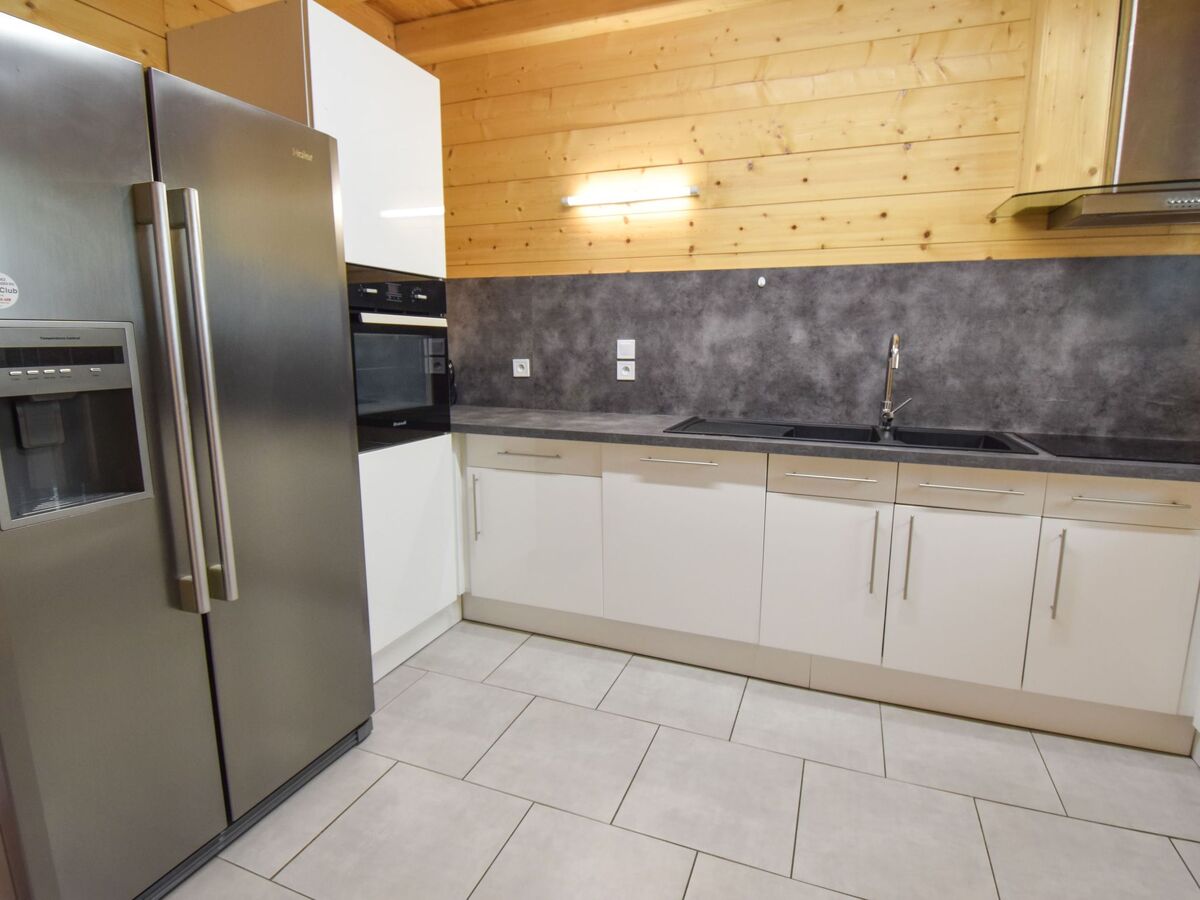 Chalet de très grand confort de 100m² pouvant accueillir 12 personnes chacun: cuisine équipée (frigo americain, four , micro-ondes, plaques vitrocéramique, lave vaisselle, lave linge...)salon (2 canapés) une piece de vie avec TV led 120 cm , 4 chambres , 2 salles d'eau, 2 wc .