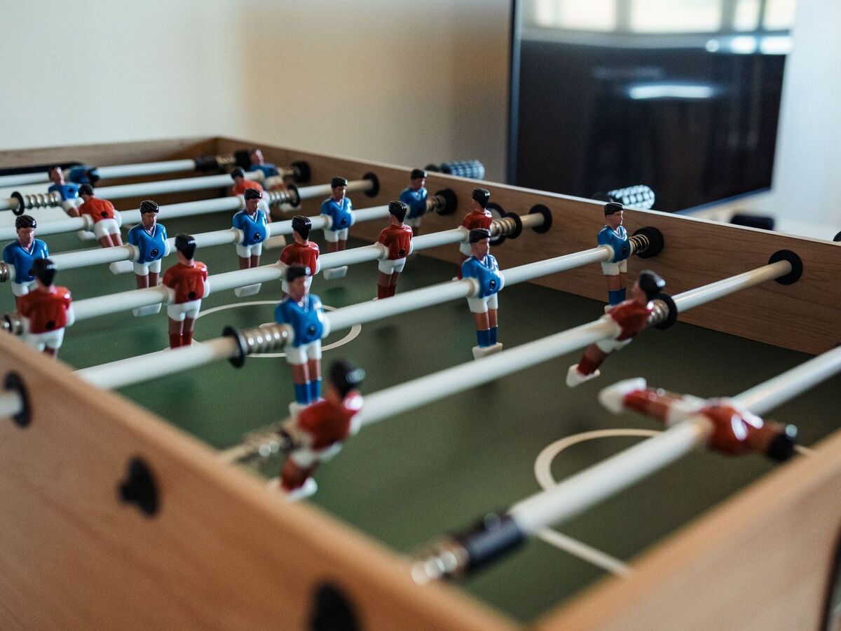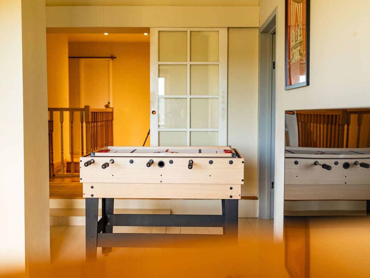 C’est également à ce niveau que se situe le salon de repos (25m2) avec une console WII, une autre TV écran de plat de 55 pouces, une table multi-jeux pour enfants ( baby-foot, air-hockey…) et un bar vintage avec tabourets.