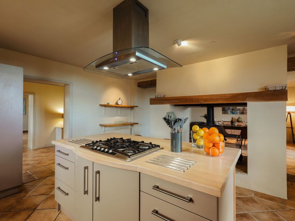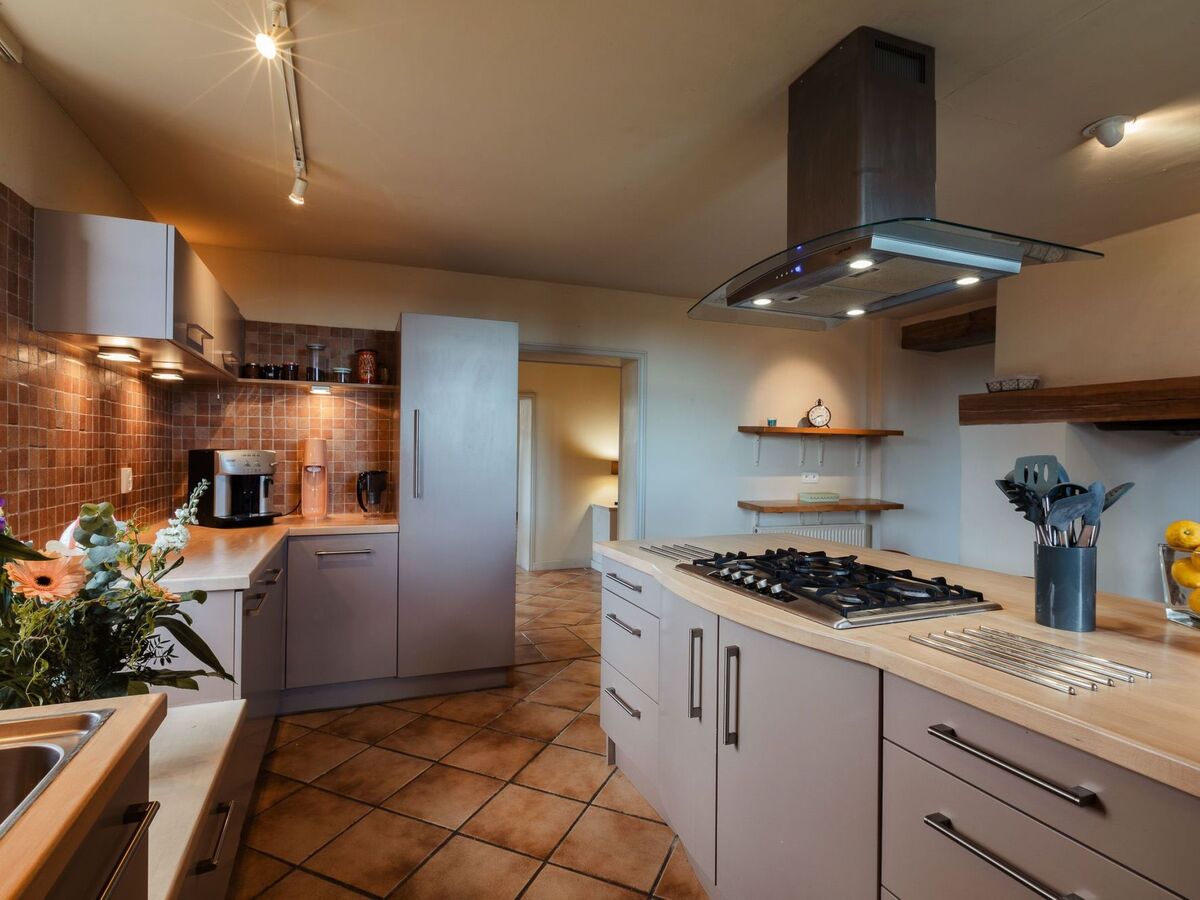 ÉQUIPEMENTS : - Lave-vaisselle - Plaque de gaz 5 feux avec hotte - 2 fours électriques dont un four à tarte/pizza - Cafetière Delonghi à grain pour filtre et expressos - Pierrade+appareil à raclette pour 8 pers, centrifugeuse, appareil à croques monsieur et gaufres, mixer plongeant.