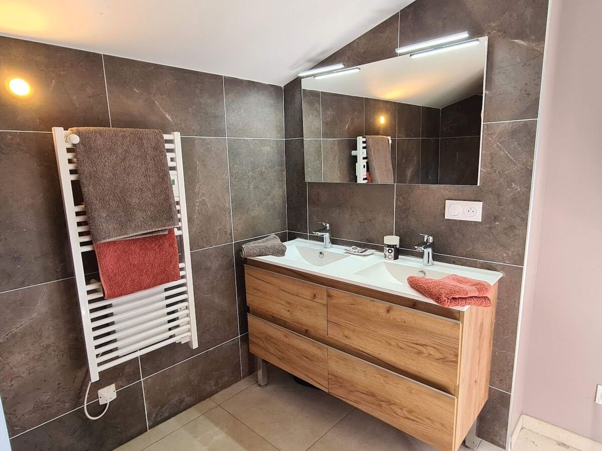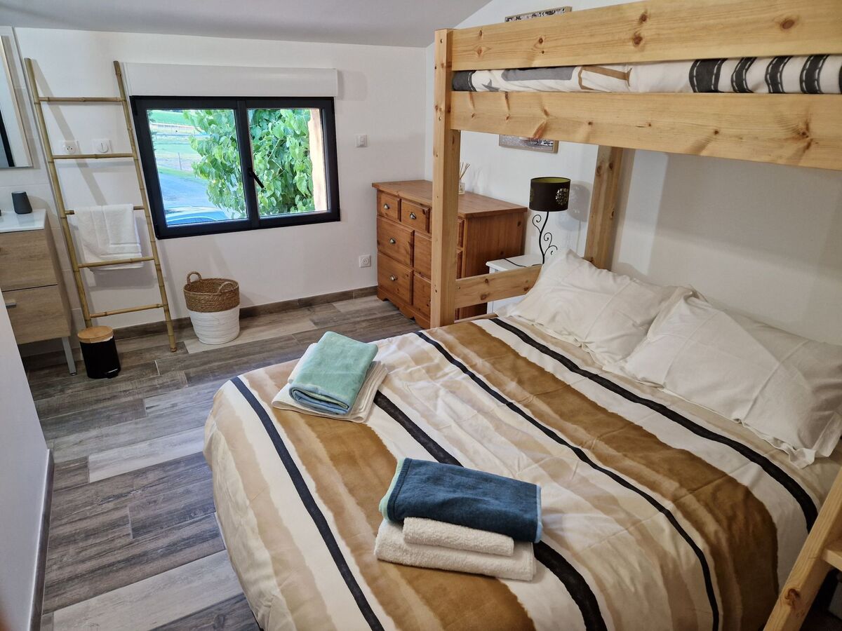 Le gite se compose à l'entrée d'une grande terrasse à quelques mètres de la piscine pour vos repas extérieur et barbecue ou plancha.Une cuisine entièrement équipée : lave linge, lave vaisselle, four, four micro onde, ouverte sur un salon, canapé convertible, suive d' un WC, 2 chambres avec une salle de bain dans chaque chambre.- 1 chambre avec un lit 2 places en 140 cm + un lit une place en 90 cm surélevé.Douche et lavabo simple vasque.- 1 chambre avec un lit 2 places en 160 cm.Douche et lavabo double vasque.Le linge de maison est fourni, serviette de toilette, serviette de bain, drap, drap housse, torchon vaisselle.