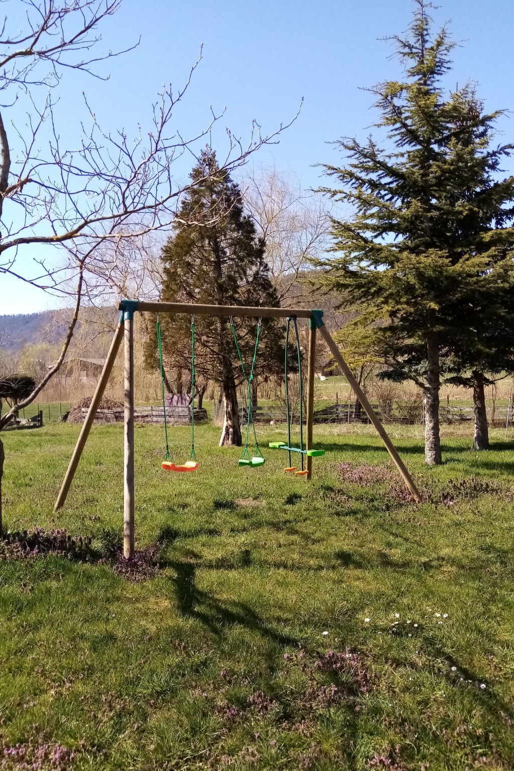 Une aire de jeux (portique avec double balançoire, ..) est à disposition des enfants sous surveillance d'un adulte.