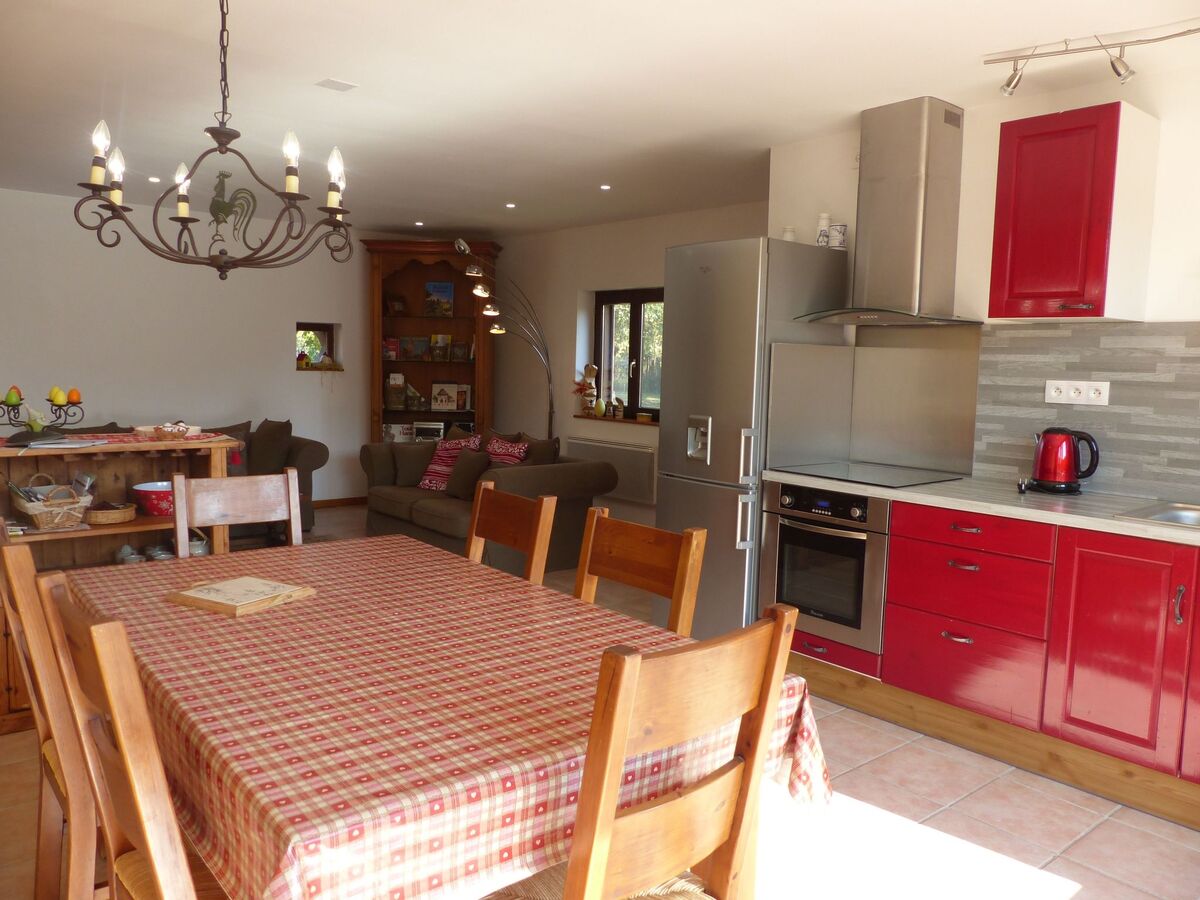 Le gite comprend 2 étages : Le rez-de-chaussée d'une superficie d'environ 65 m² est composé des pièces suivantes : une cuisine toute équipée avec cuisinière, four, four à micro-ondes, cafetière et coin repas ouverte sur la pièce à vivre comprenant un salon- séjour avec les équipements multimédias (téléviseur à écran plat, lecteur DVD, chaine hifi) et bibliothèque fournie ; un espace détente complémentaire dans une alcove comprend un canapé-convertible lit à deux places .