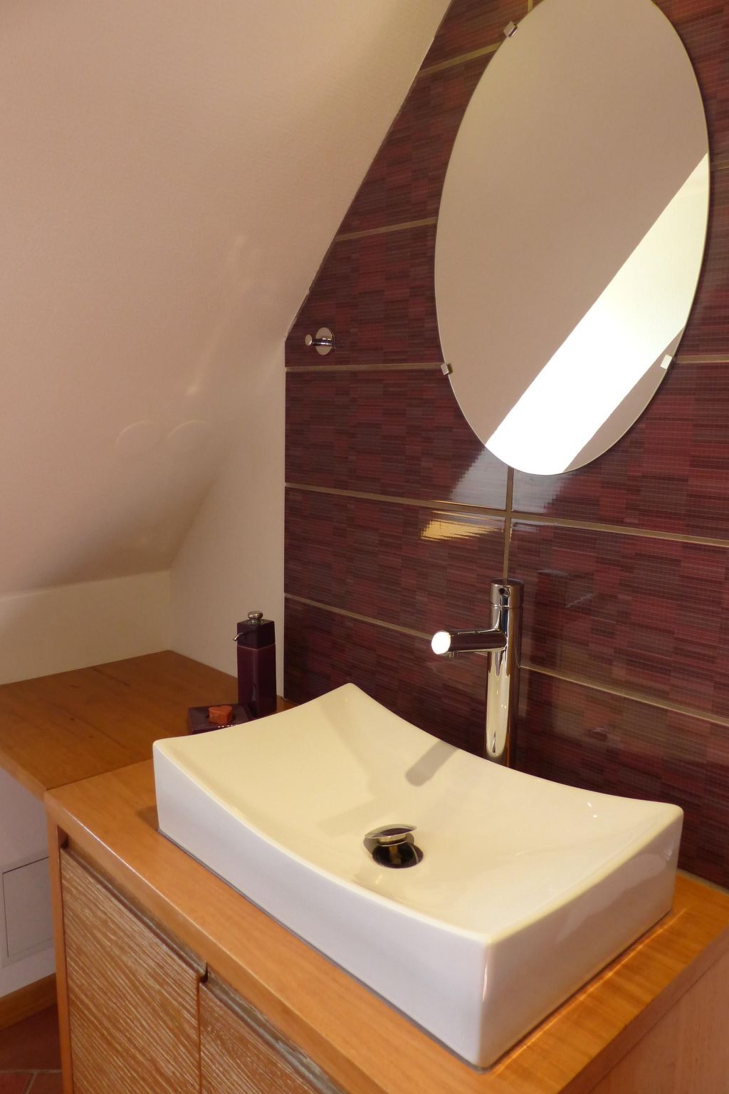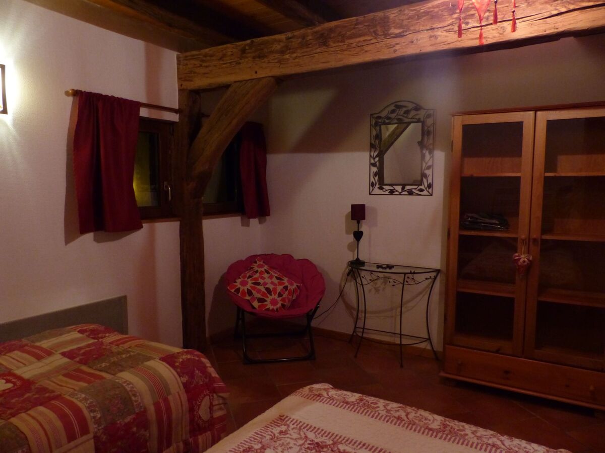Au 1er étage ont été aménagées deux chambres à coucher ; dans la 1ère se trouve un lit double 160*200 cm et un lit bébé en bois, dans la 2ème : 3 lits simples 90*200 cm ; sur le pallier se trouve un coin détente et une 2ème salle d'eau comprenant douche, lavabo et WC.