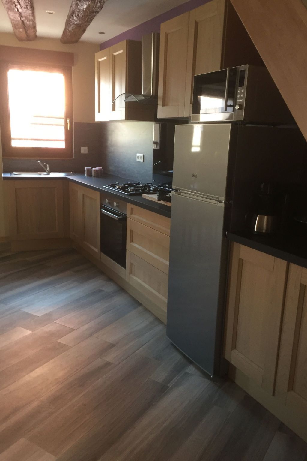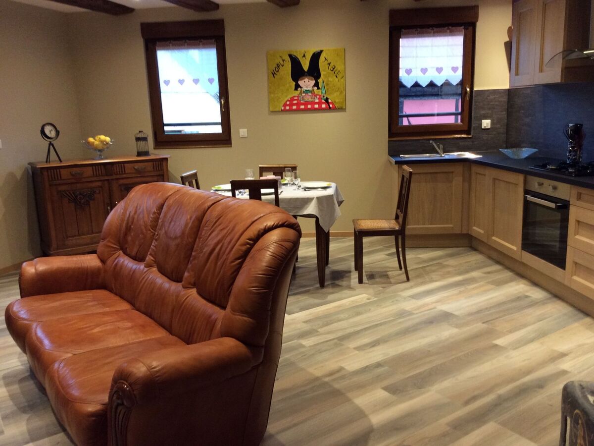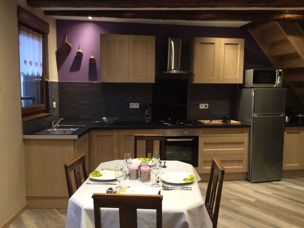 A l’entrée du gite une cuisine équipée, salon-salle à manger, chambre avec salle d’eau et wc privatif , dans les combles, une chambre également avec salle d’eau wc privatif .