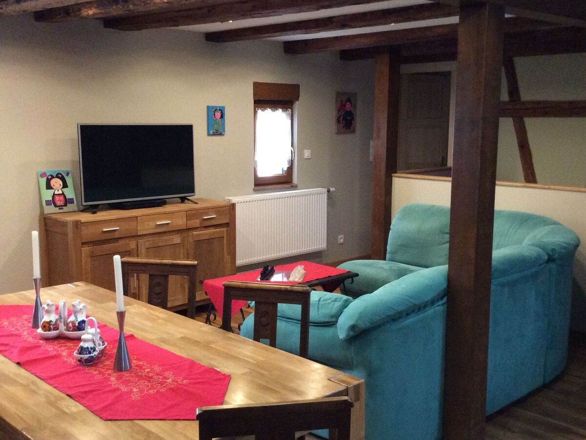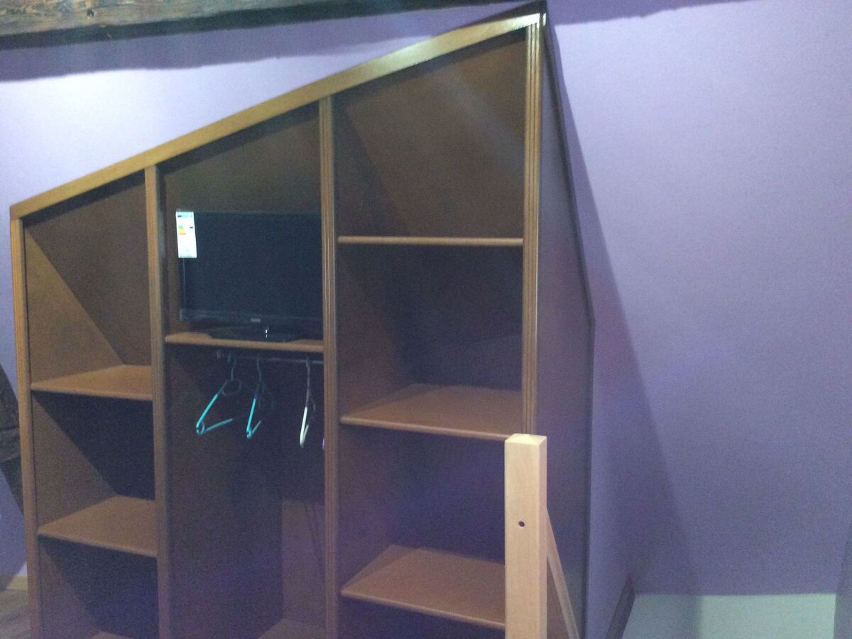 Pour encore plus de détente, les combles aménagés offrent un coin télé avec canapé, un grand lit, ainsi qu'un WC et lavabo pour votre commodité.