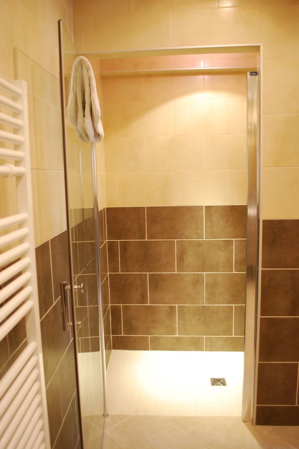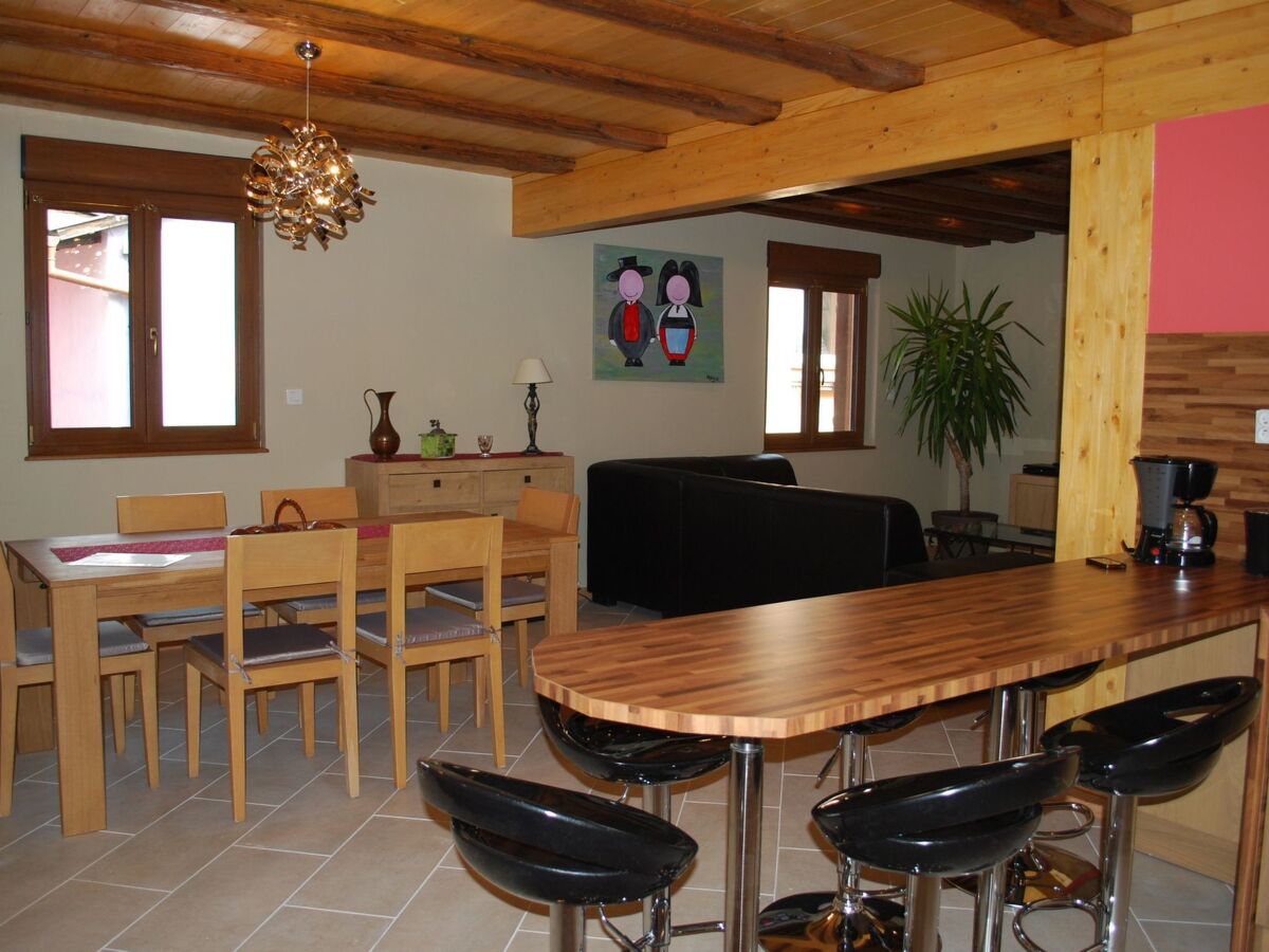 a l’entrée du gîte une cuisine équipée, salon-salle à manger, salle d’eau wc séparé .