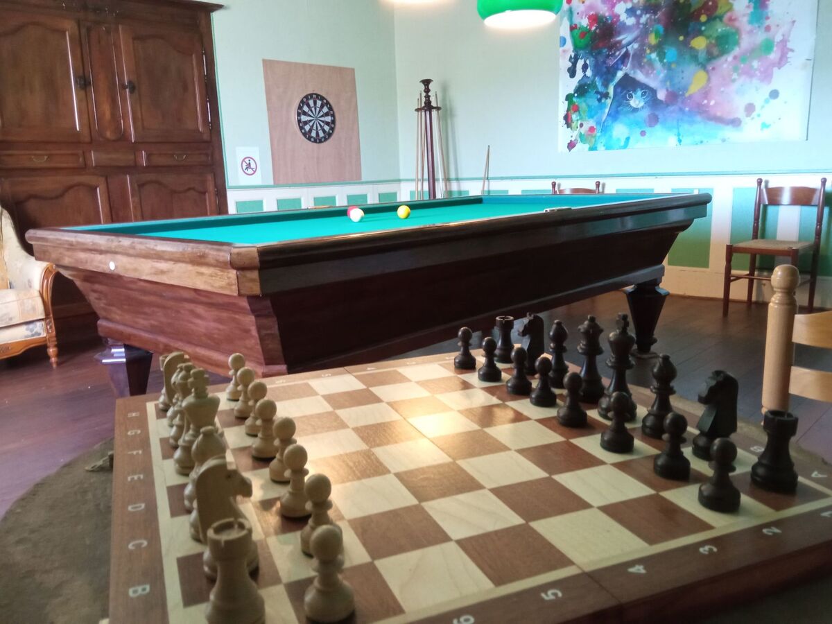- Salle de jeux de 36m² avec un grand billard Français, jeu d'échec et fléchettes.