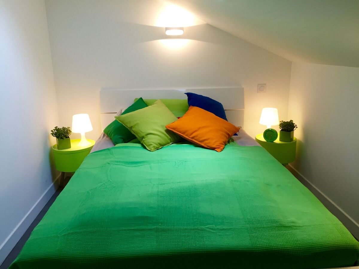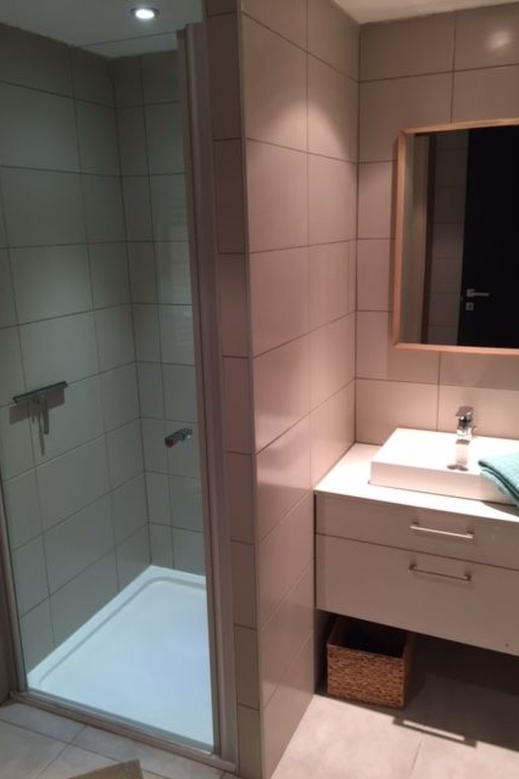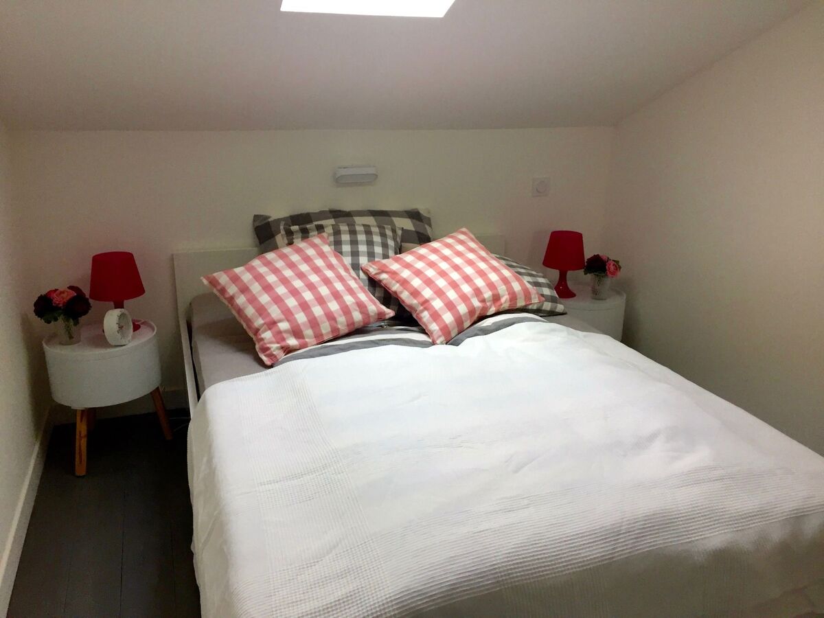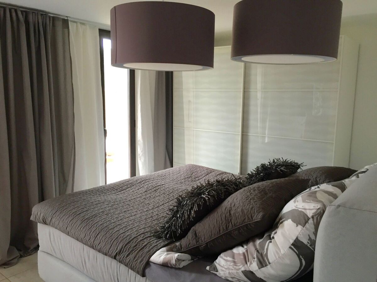 Une chambre parentale, moderne et climatisée avec un lit confortable back-friendly (180 x 200), une grande armoire, commode, miroir et salle de bains attenante avec douche et WC separés.