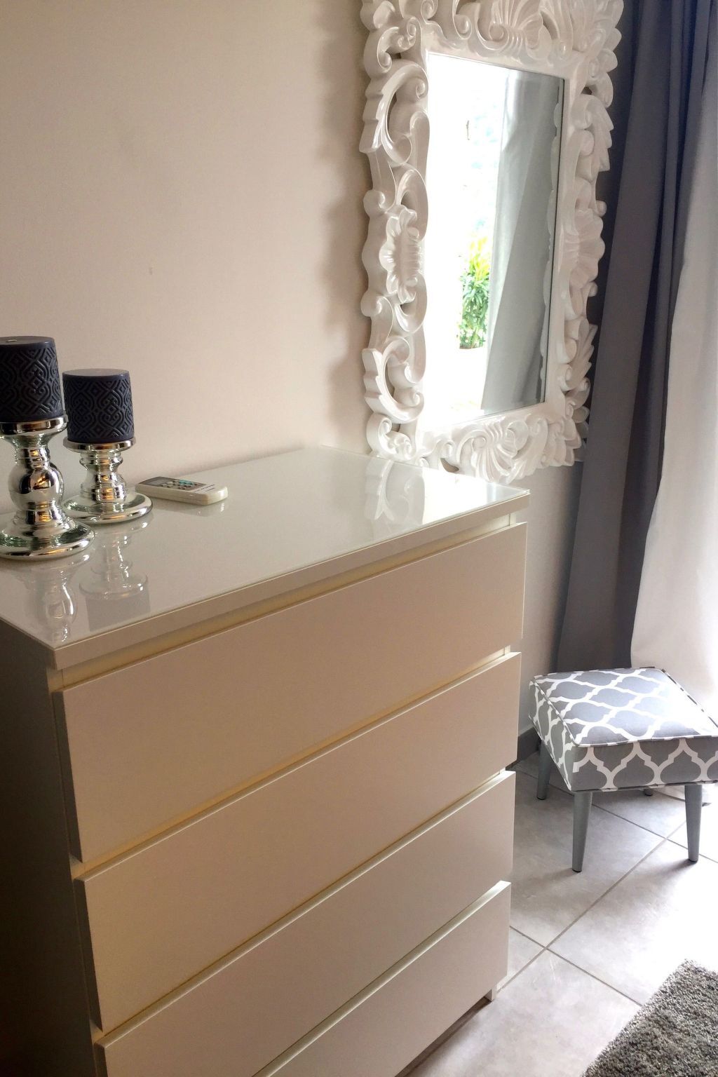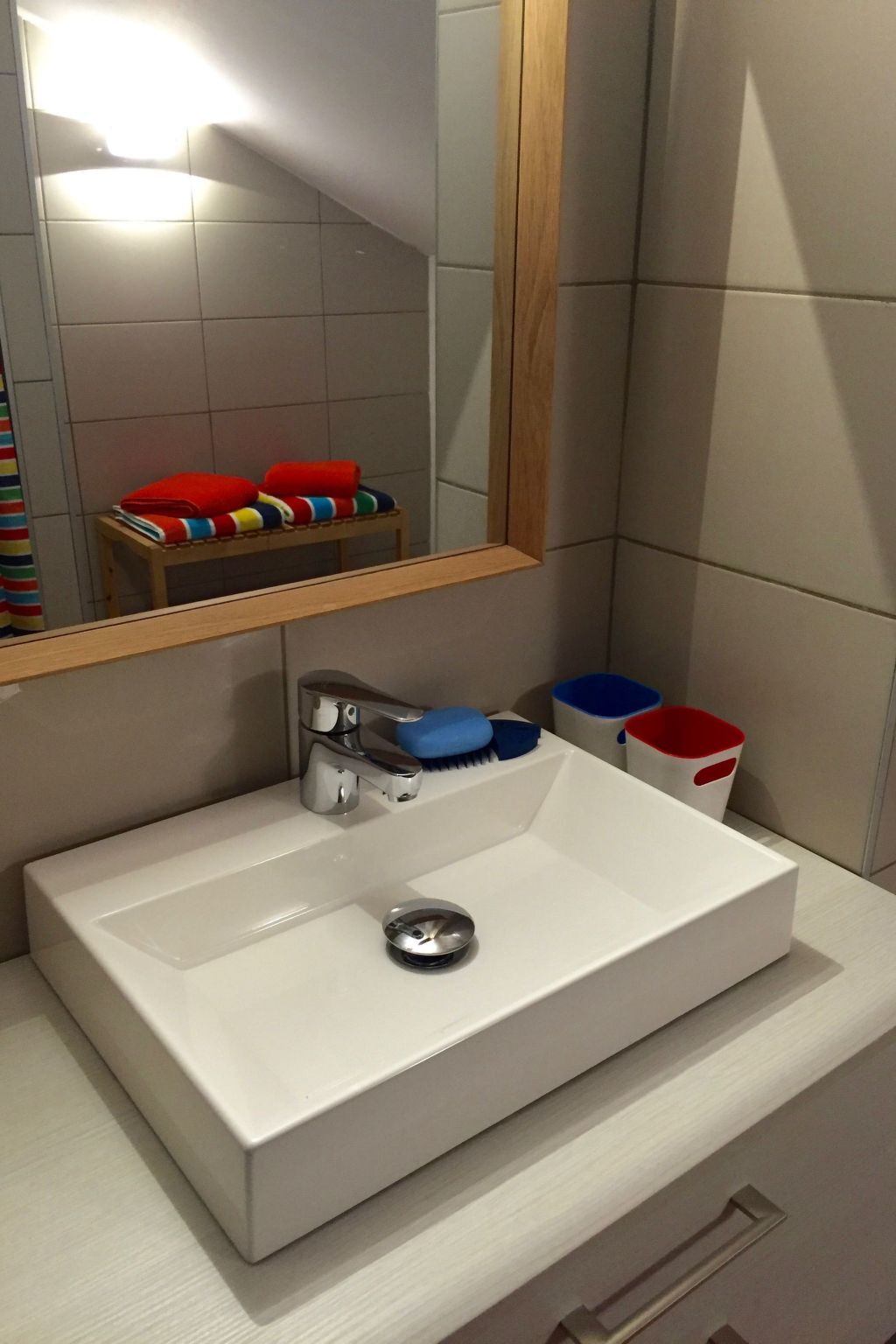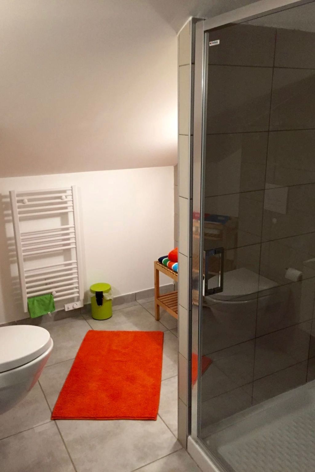 Une chambre parentale, moderne et climatisée avec un lit confortable back-friendly (180 x 200), une grande armoire, commode, miroir et salle de bains attenante avec douche et WC separés.
