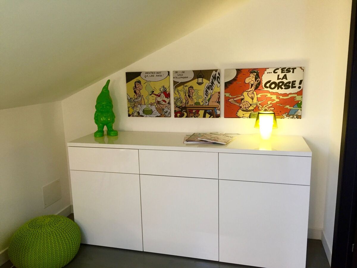 Depuis la mezzanine, 2 autres chambres climatisées avec lits doubles (140 x 200), commodes et salle de bains attenante.