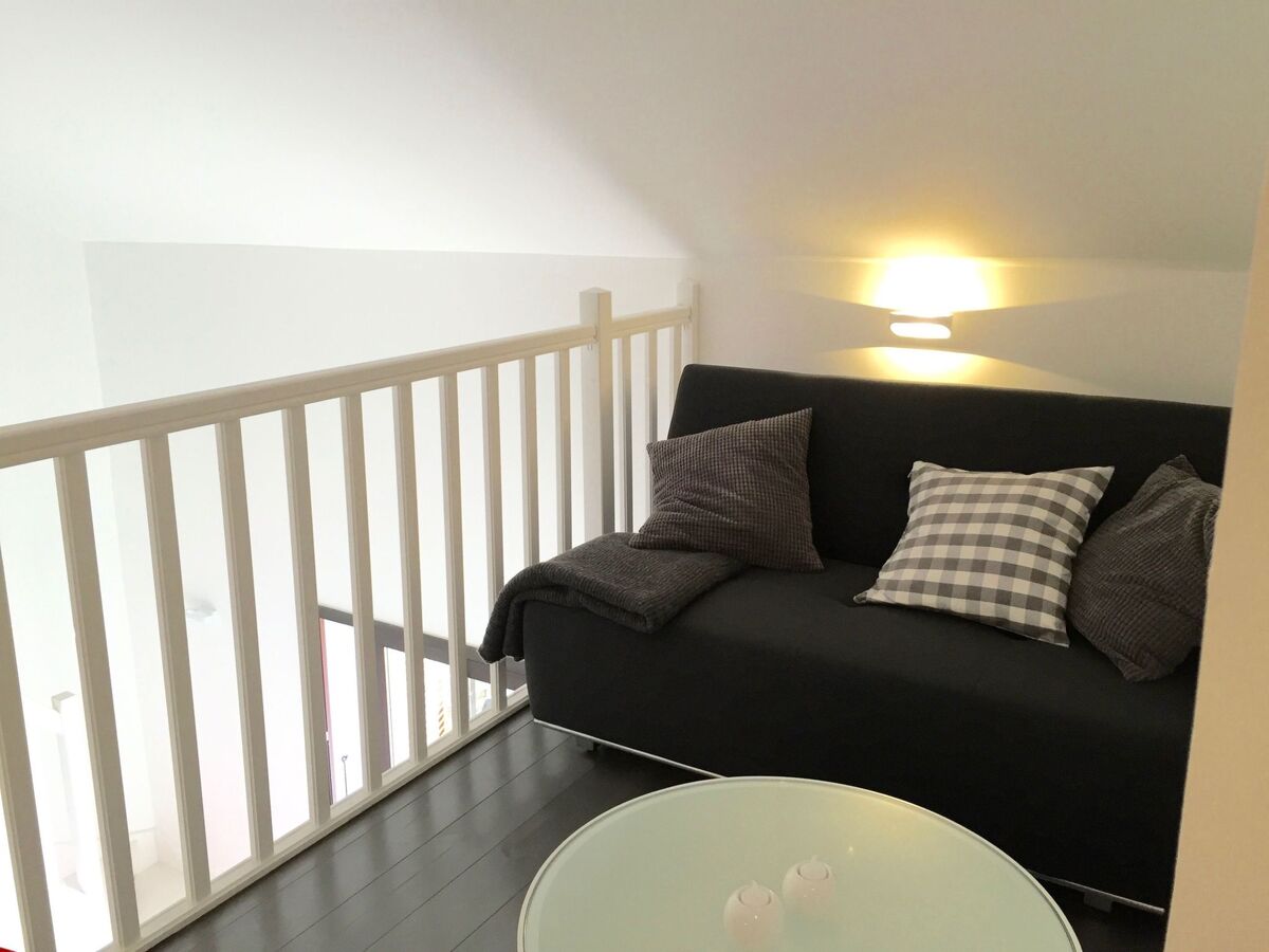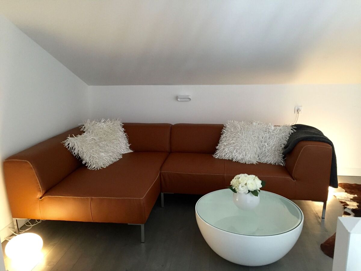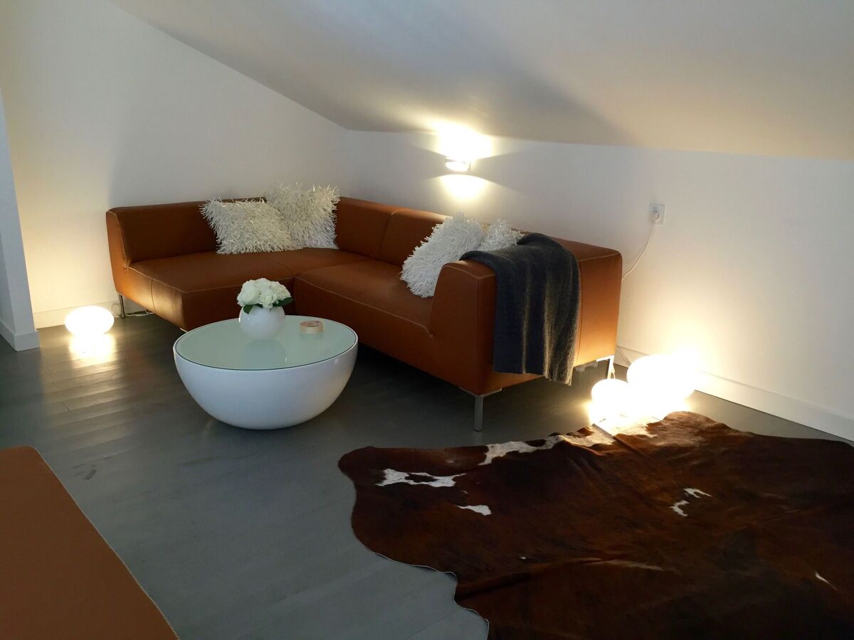 Un salon spacieux est situé sur une mezzanine ouverte: un grand canapé cuir, 2 tables basses, TV et DVD/blue-ray, Apple TV, des DVDs pour les enfants, internet/wifi rapide illimité, un coin détente/lecture.