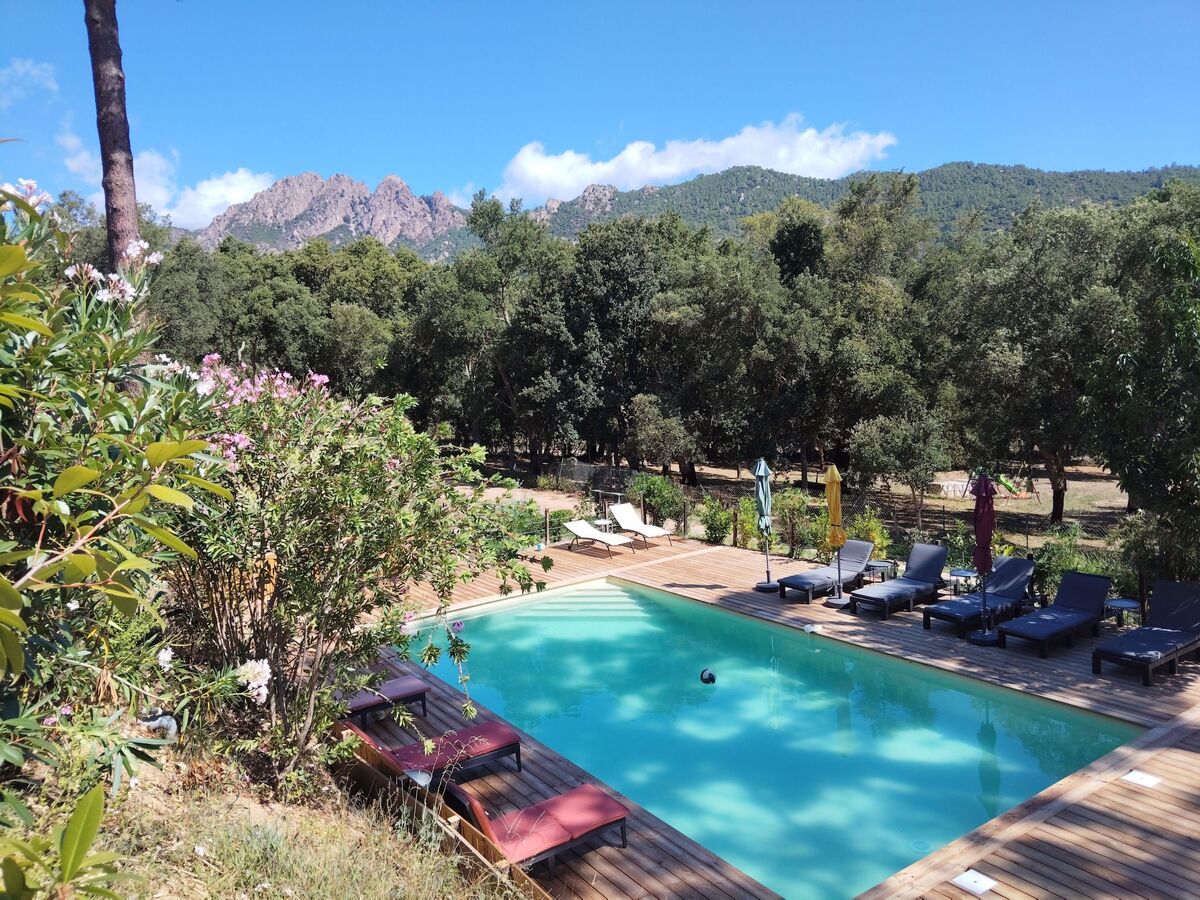 Chalet au cœur du maquis 65 m² sur 2000 m² de terrain Piscine 5 x 10 m chauffée partagée, vue sur les montagnes de l'Ortu au pied du célèbre GR20.