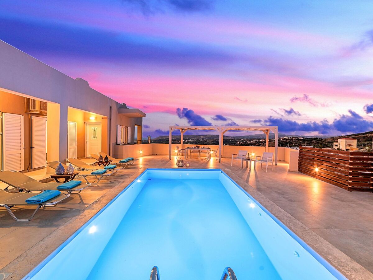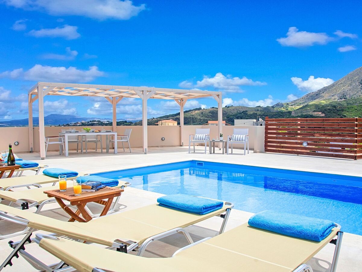 You can relax at the private swimming pool, surrounded by a colorful flourishing nature, laying in your sunbed with a refreshing drink or snack.Villa di Giorgio offer’s everything that is required to make your stay in Crete an unforgettable experience.The management and the staff extend you a very warm welcome believing that your stay with us will be pleasurable and unforgettable.The outdoor pool is heated and can reach 6 to 8 degrees more that the 24 h average air temperature with maximum value of 29°CShort descriptionOther : Non-smoking houseShort description 1Number of kitchens : 1SurroundingNearby sports facilities : Diving, Mountain climbing, TennisRental Facilities : car rentalGarden and outdoorGarden facilities : GrillOn-site leisure facilities : Outdoor swimming pool exclusive use, Swimming pool