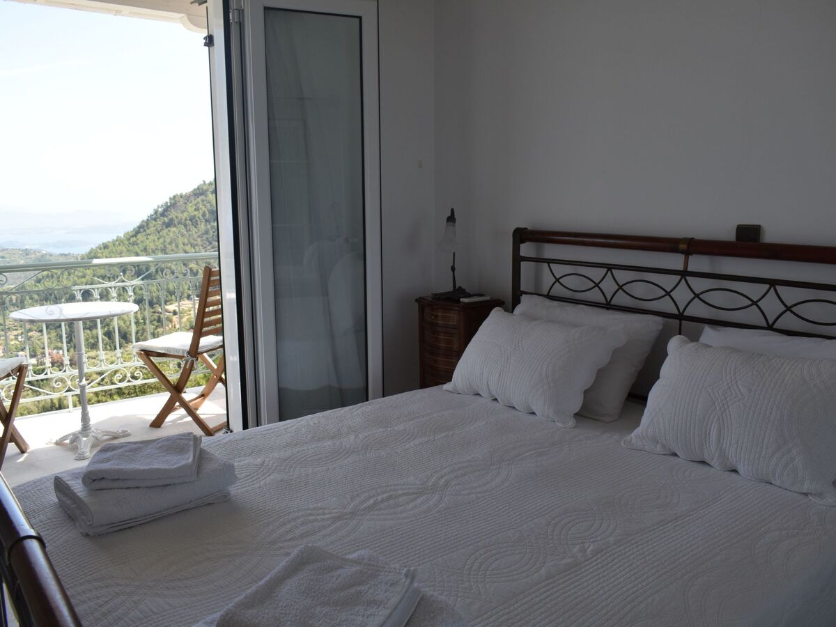 The presence of a balcony invites you to unwind with a book or simply soak up the breathtaking views that envelop the estate, offering glimpses of the Ionian Islands Scorpios and Meganisy.