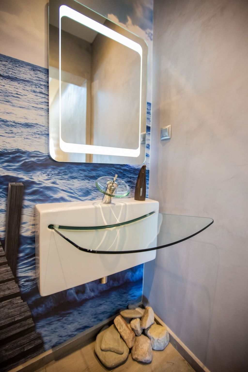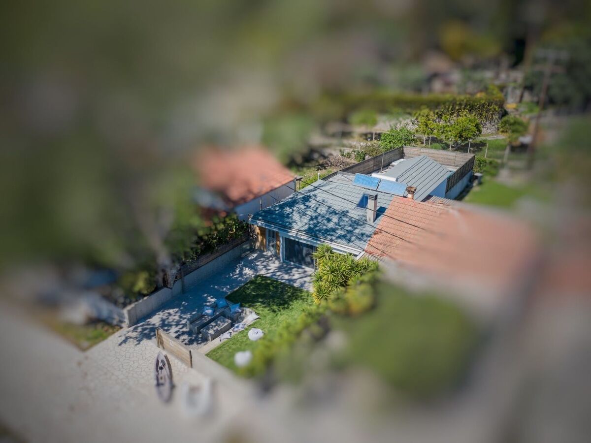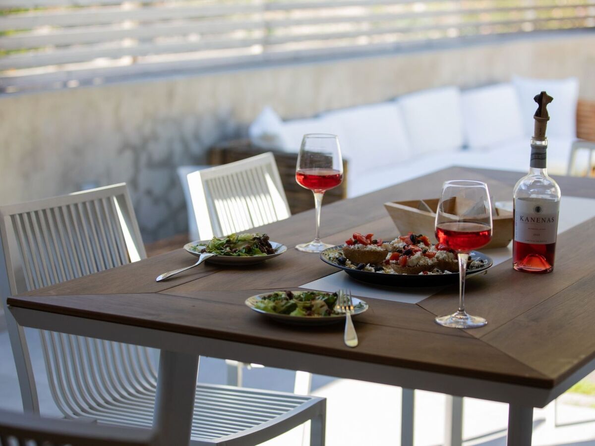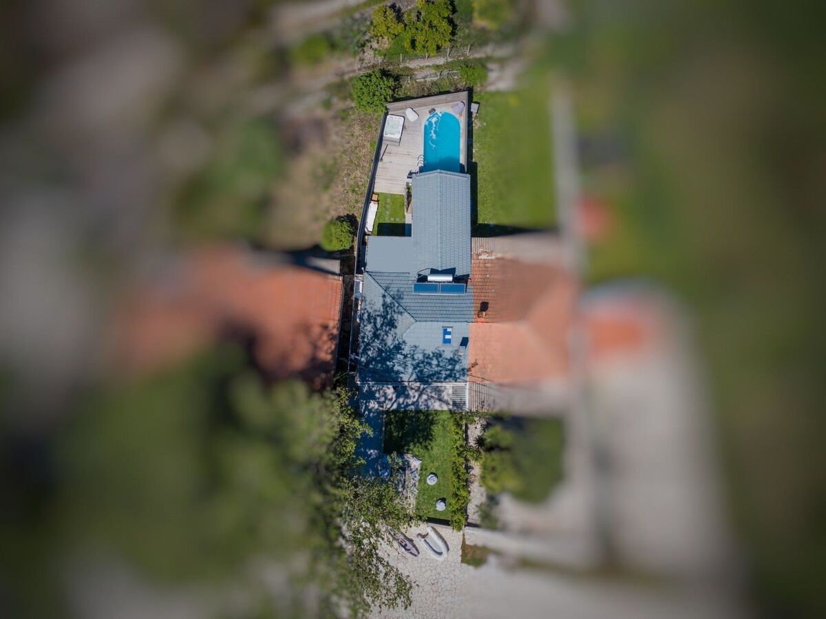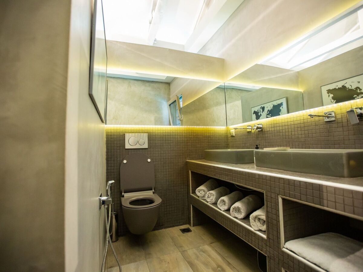 The combination of tall wooden ceilings and large glass doors allows a stunning view on the sea, the Rio-Antirio bridge, a small picturesque church and the Peloponnesian mountains.“ This villa is an absolute smart home, renovated with today’s highest standards of house construction and accomplishes the in-out living perfectly.On the ground floor there is a beautiful living room with a fireplace and a 55” television, an open spaced kitchen with an island fully equipped with branded built-in electrical devices, a dedicated multimedia workspace, and a built-in “nock” couch all in the same open space.There is also a large master bedroom with a king size bed, a double doored closet, a bathroom with two sinks and an in-out shower with multiple water ejectors.