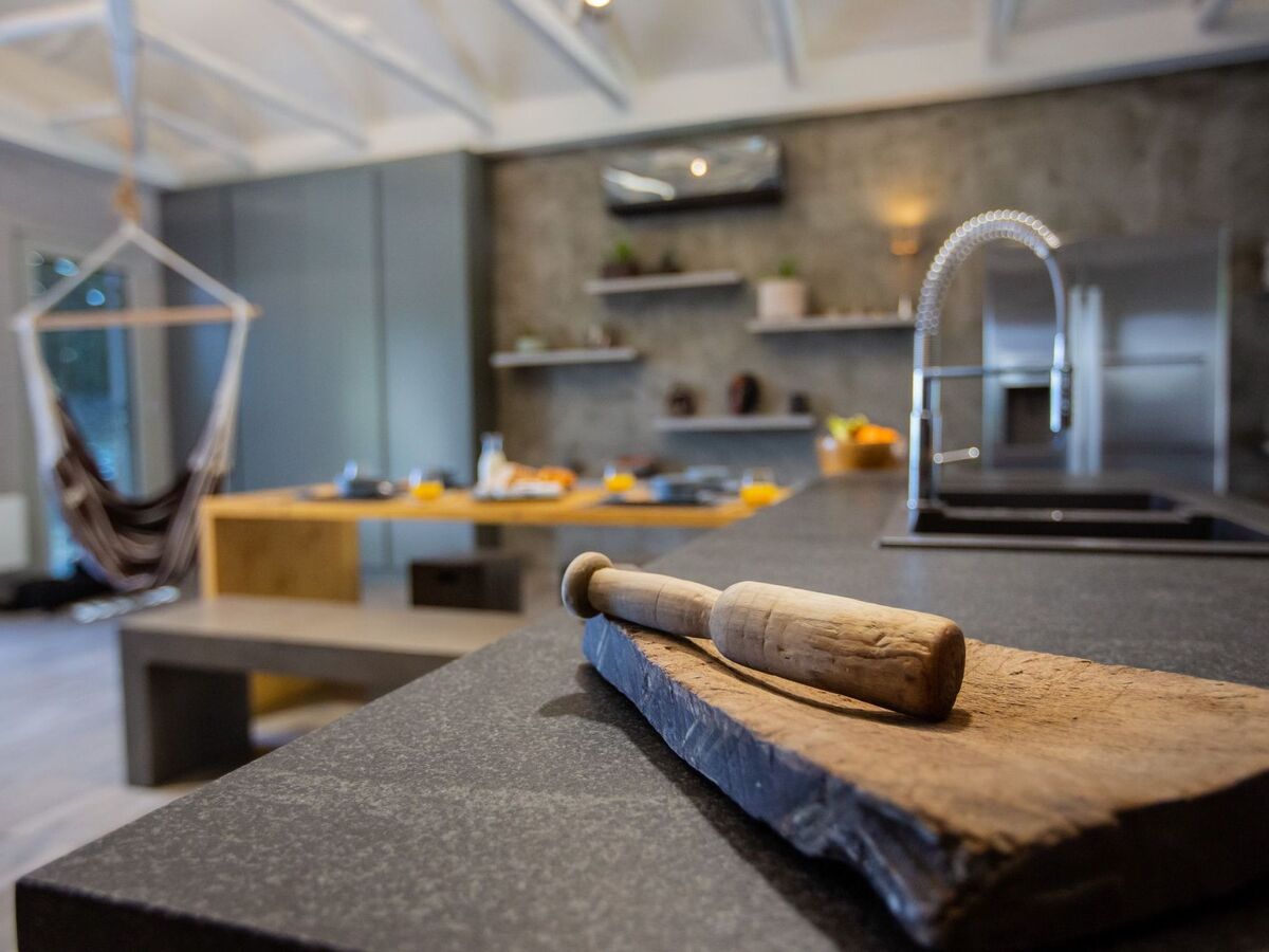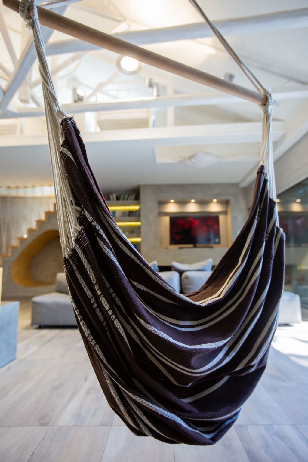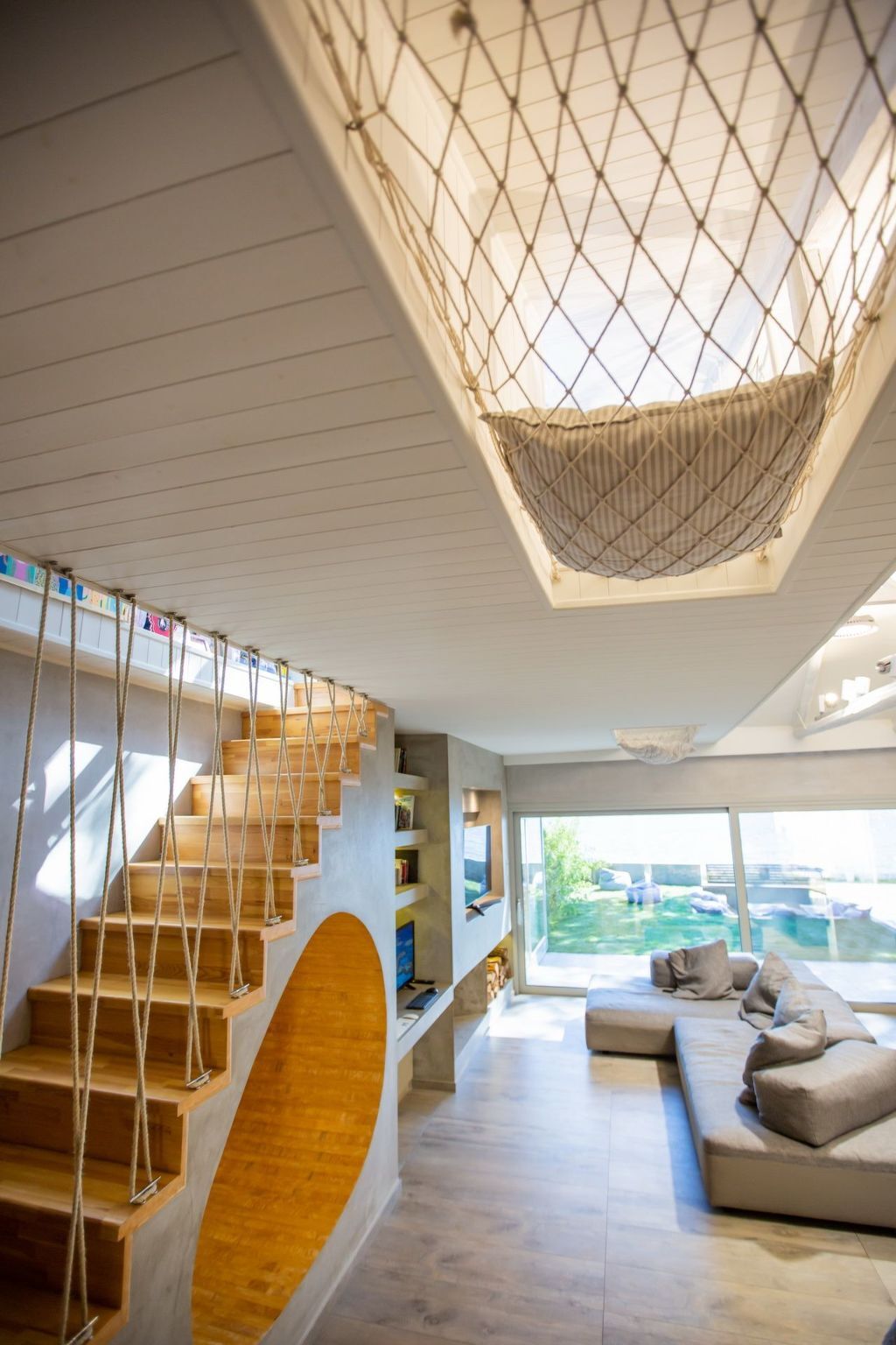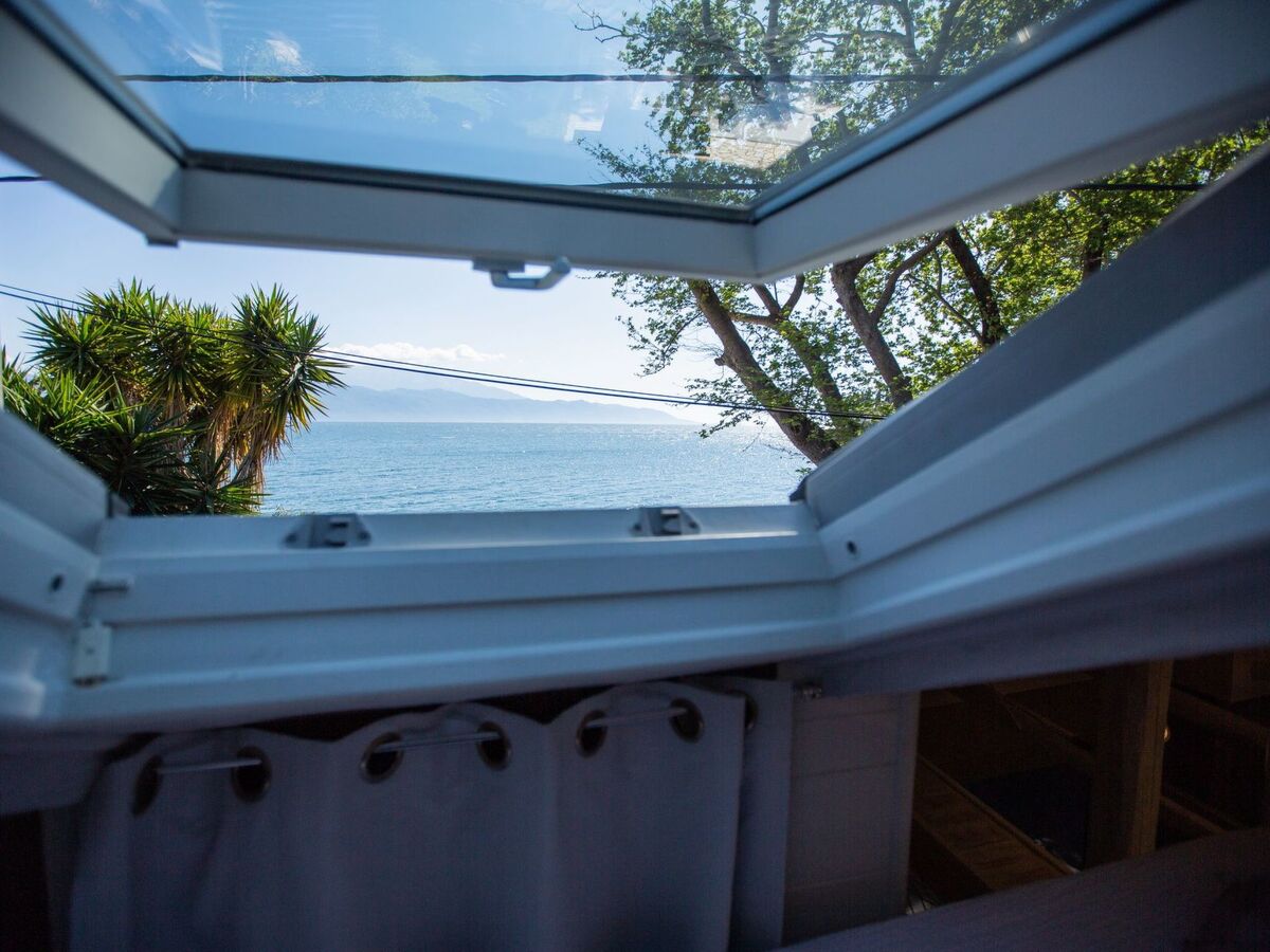 On the second floor (attic) there is a bedroom with 2 single beds, 2 hammock beds, a desk with a bookcase and a roof window that offers a unique view and brightens up the place.