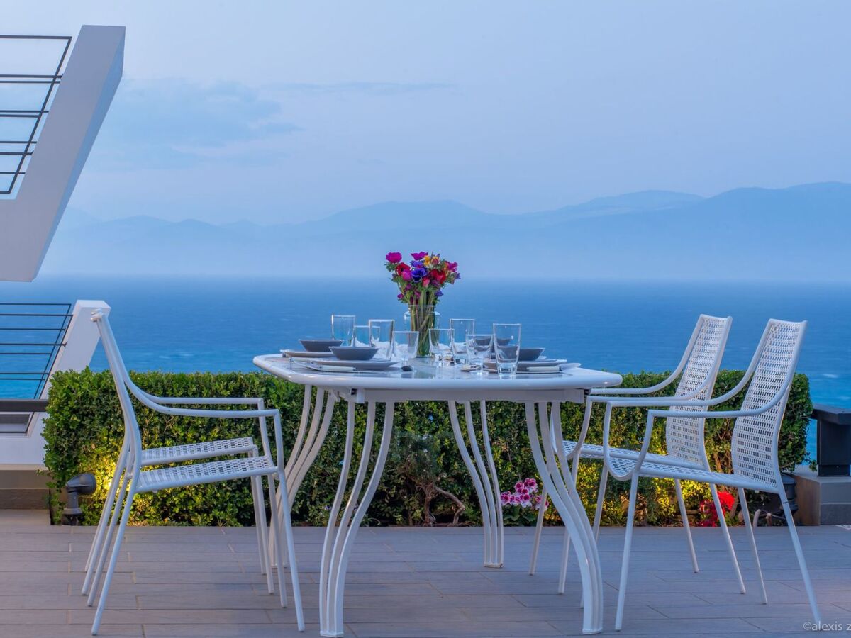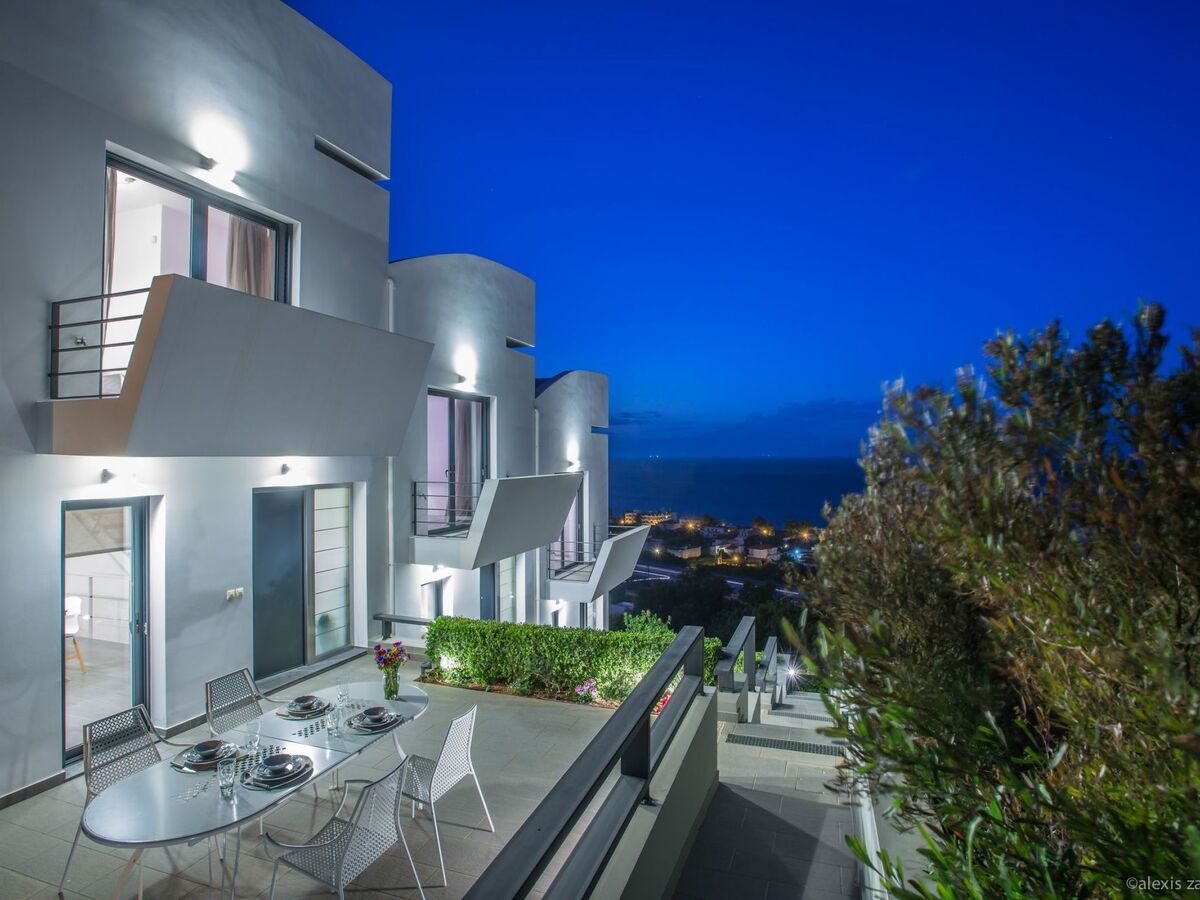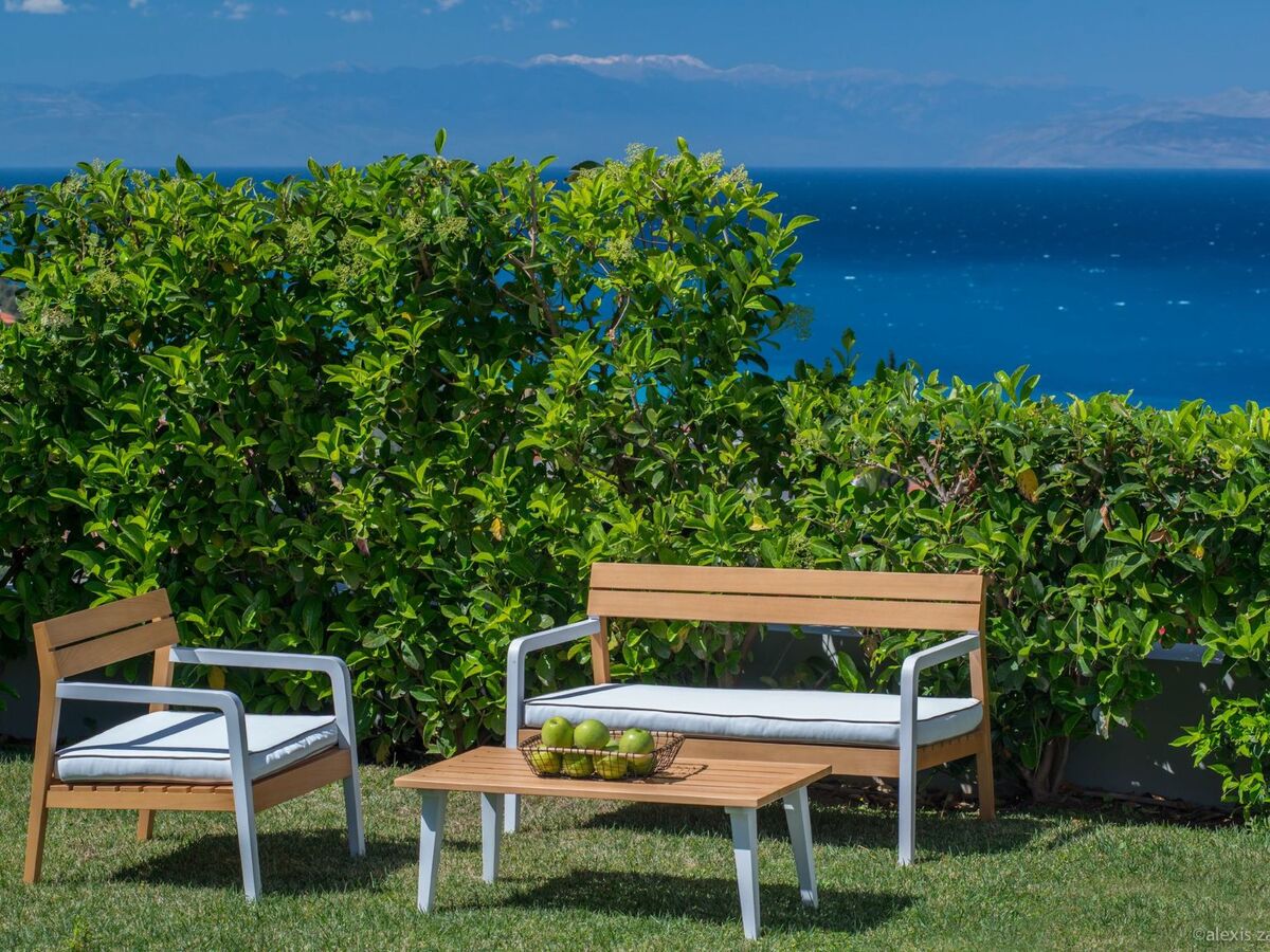 It has a panoramic view over the Corinthian Gulf, as well as an exceptional sunset view.