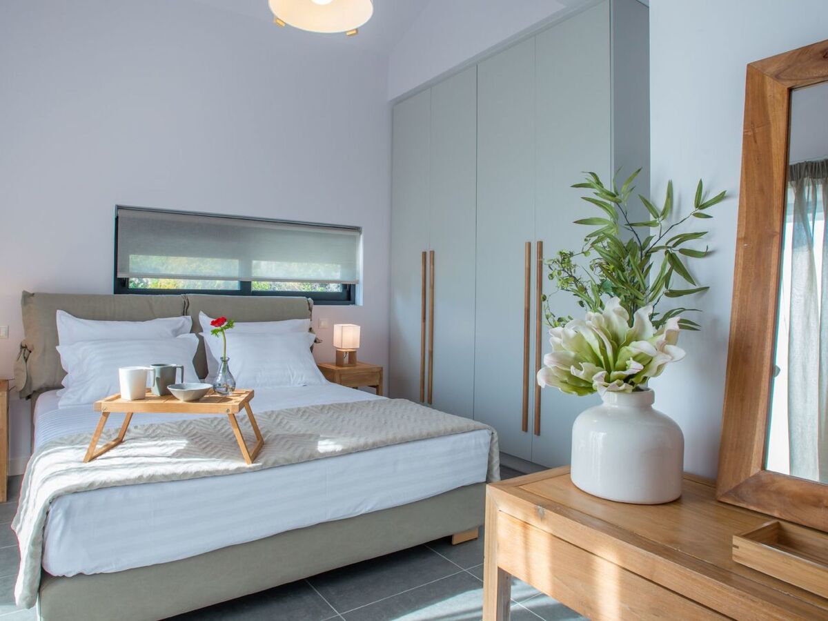 Upper level: Master bedroom with Super King size bed (1.80m) and balcony with sea view, double bedroom with King size bed and balcony with forest and sea view, bathroom.