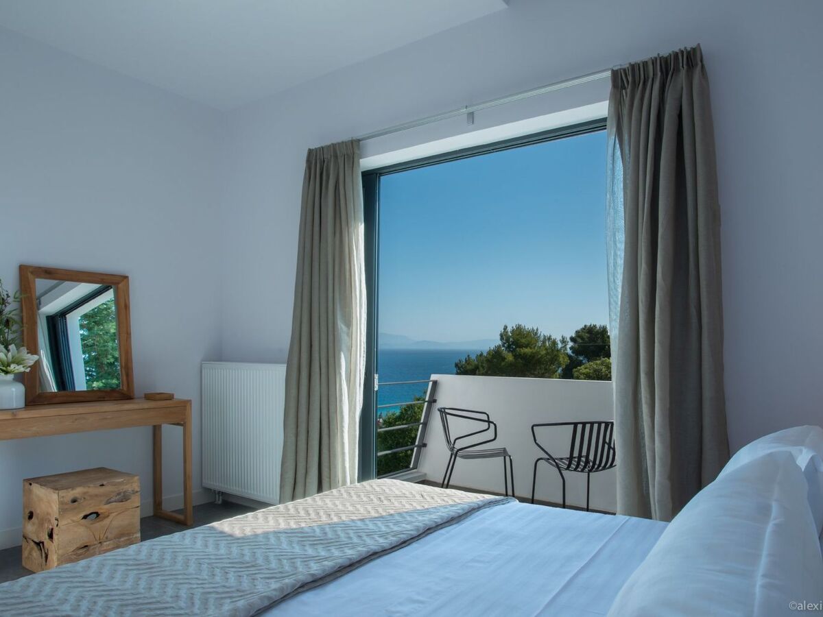 This cliff - edge villa integrates perfectly into the landscape in one of Peloponnese most stunning locations with panoramic and unobstructed sea views.
