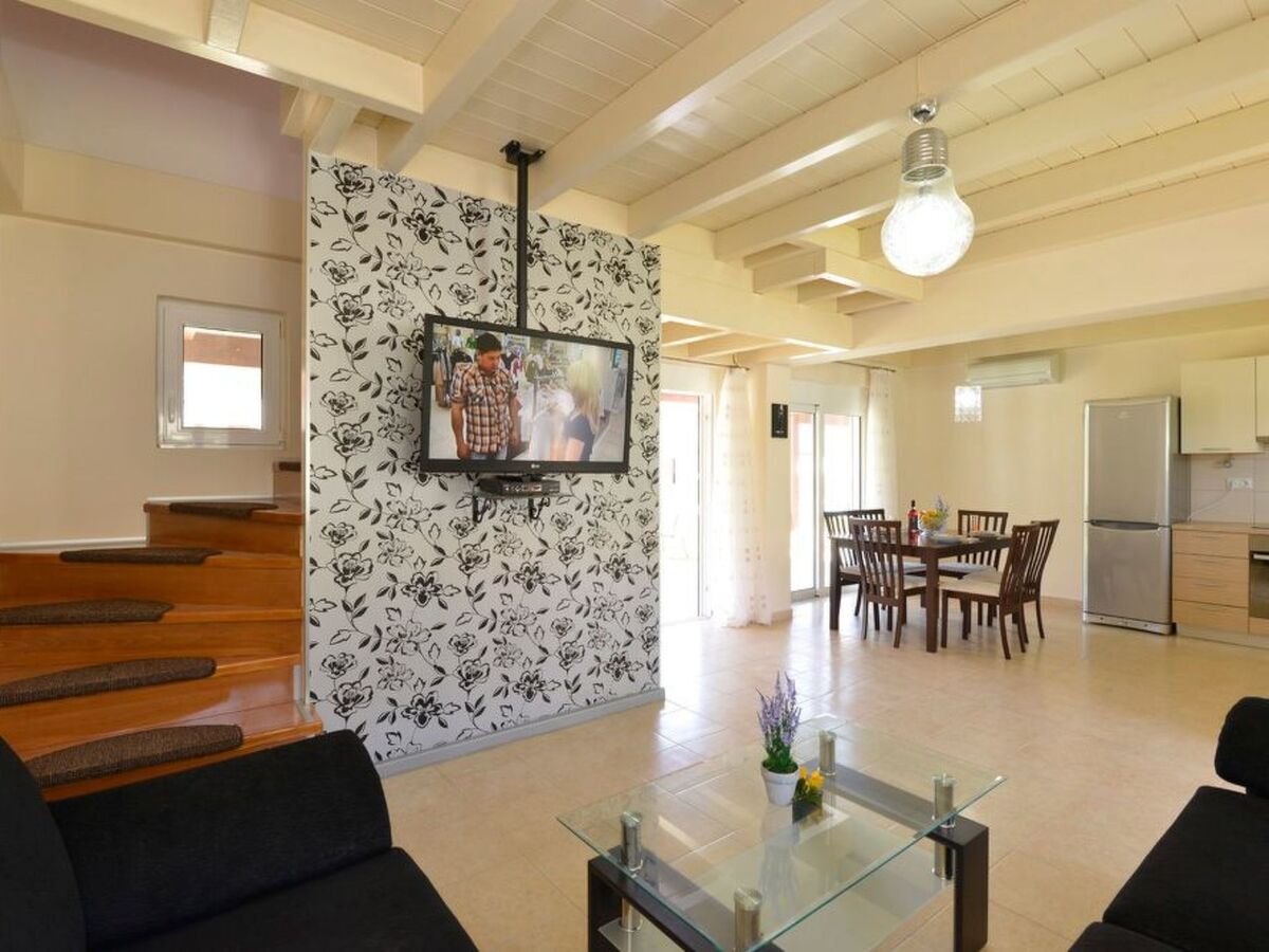 These modern Greek-style house is only 300m from the beach and with a beautiful view of the surrounding mountains.