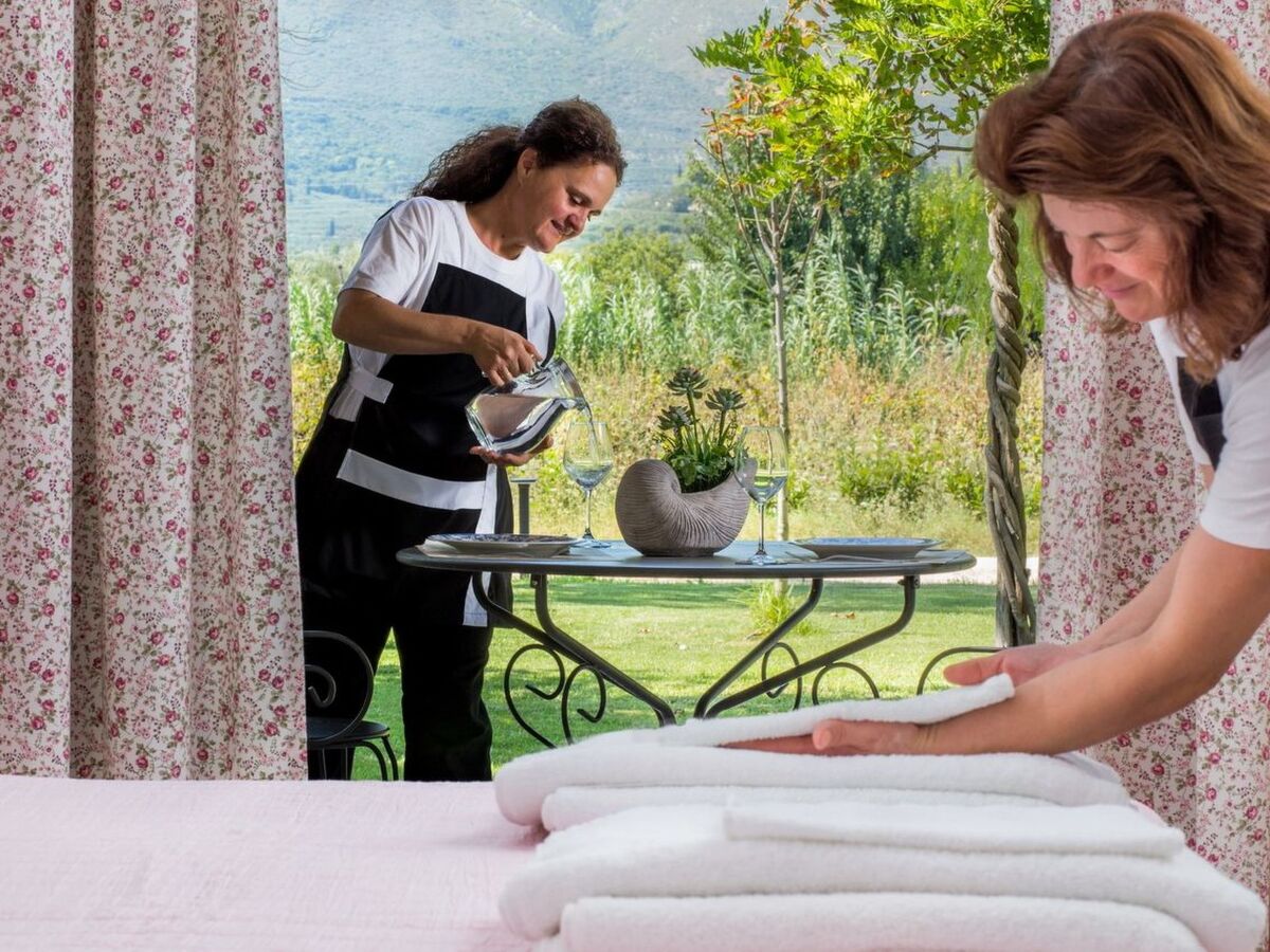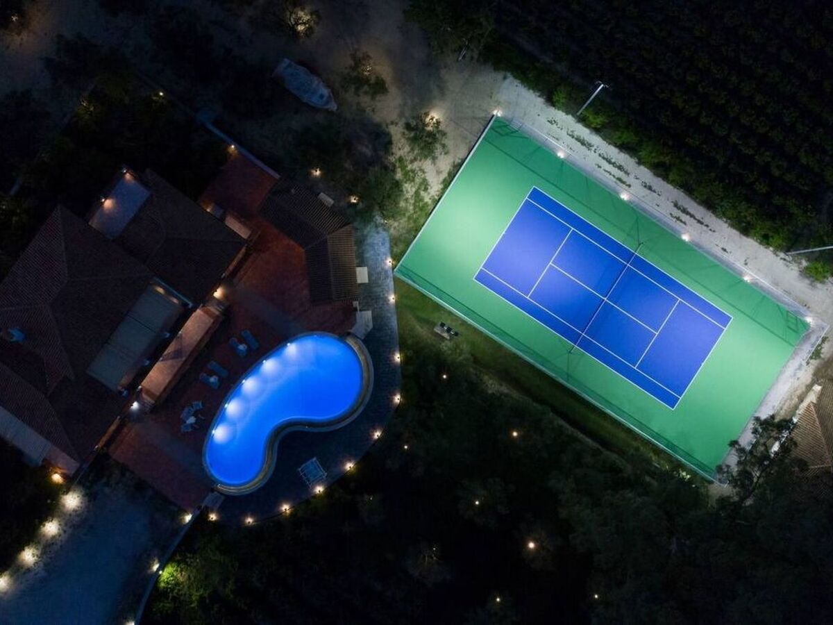 Distinctive features:• Free, professional standard, tennis court with lighting for playing at night • Tennis equipment is provided (extra charge) • Infinity Private Pool 20x6m • Hydro-massage area • Lawn playground under the olive trees • Covered Terrace • Balcony • Veranda • Outdoor Shower • BBQ • Vineyard • Garden • Fresh, organic, naturally grown vegetables and fruits from our garden • Bicycle and jogging path • Mountain Bikes (free) • Olive oil tasting from our olive grove • Table Tennis • Wheelchair rampSpecial arrangements upon request:• Daily housekeeping service • Private Chef • Private catering services • Wine Tasting at local wineries • Traditional delicacies cooked at wood-fired oven •Transportation • Car rentals • Baby-sitting • Breakfast, lunch, dinner on delivery • Yachting • Motorboats • Massage, Spa treatment • Hairdresser • Manicure, Pedicure treatment