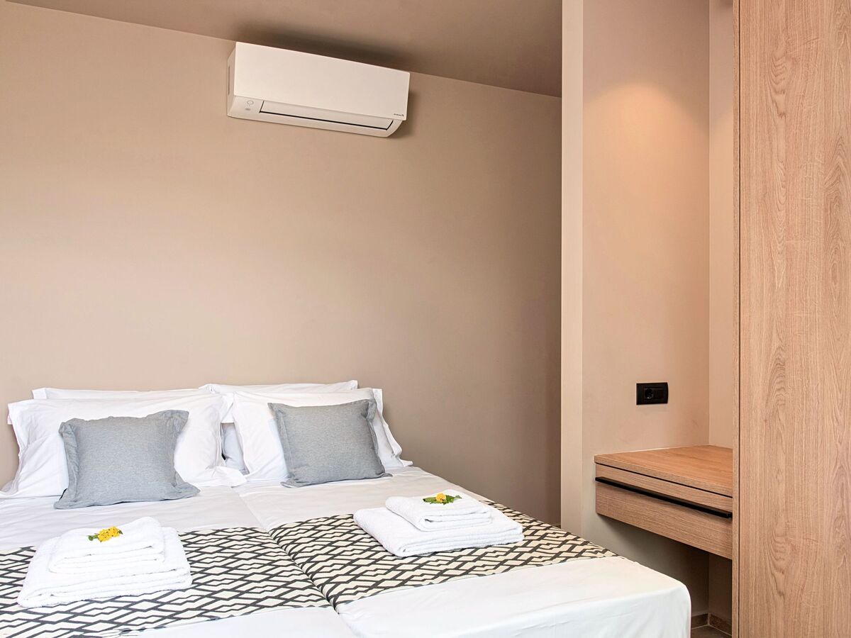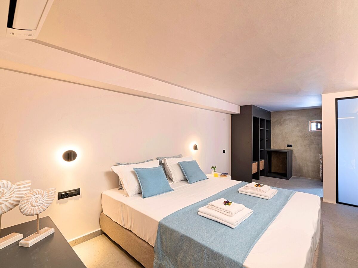● A large bathroom with shower.● Washing machine / Dryer● Large terrace overlooking the swimming pool● Air-conditioning in all areas.● Free WiFi internet access.● Outdoor dining set (table with chairs).● Iron and ironing board.● Safe deposit box.● Hair dryer.● Linen and towels.● Toiletries.● Swimming pool towels.● Baby cot.● High chair for children.● Towels and bed linen changed and cleaned every 3 or 4 days.● Private parking area.● Direct access to the swimming pool area.● Private swimming pool.● Sun lounge area with sun beds and umbrellas.● BBQ with cooking and dining area next to the swimming pool.Omega Sissi Lux VillaFacilitiesGround floor● A bedroom with two single pushed together beds and private bathroom.● A bedroom with two single pushed together beds and private bathroom Upper floor● A living room with a large corner sofa (can accommodate two beds) and direct access to the terrace and the pool area.● Smart TV at the living room● Large Kitchen / dining area with an oven, a fridge, a coffee maker, tea facilities, a juicer, a toaster and a dish set.● A bedroom with a queen-size double bed.