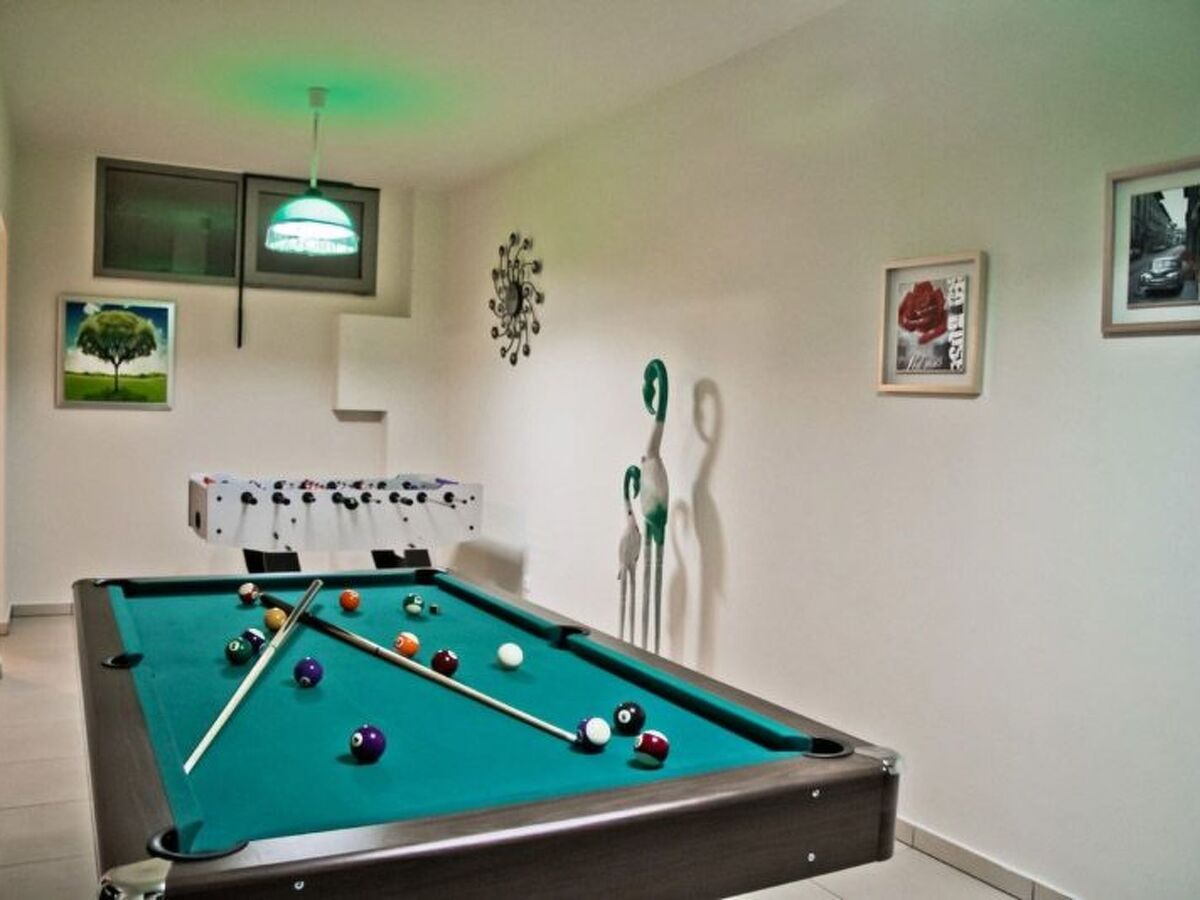 Lower ground floor from the windows: table football and Billiards, library, safety Deposit box, one bedroom, WC with shower, washing machine and Ironing room.