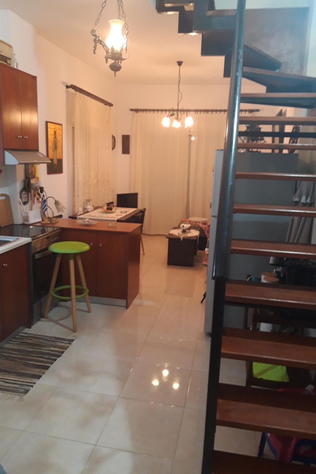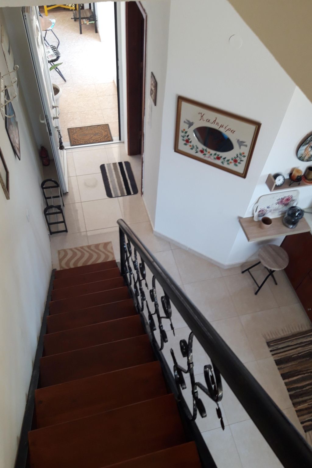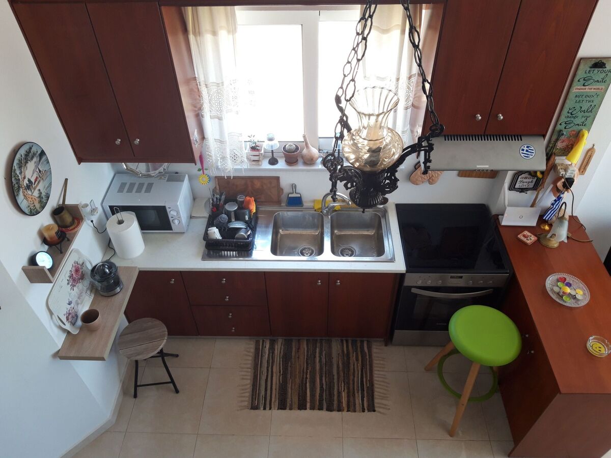 Two floors simply and stylishly furnished, downstairs /cca 30 m2/ with living room, fully equipped kitchen /electric cooker with oven, fridge with refrigerator and ice cubes maker, microwave, coffee machine for espresso, greek coffee, french press, frappe, tea kettle, kettle, electric fresh juice maker, sandwich maker/, bathroom with shower /incl.
